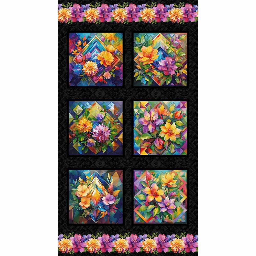 Studio E. - Flower Fusion - Bright Geometric Florals Block Panel - 24" x 44"