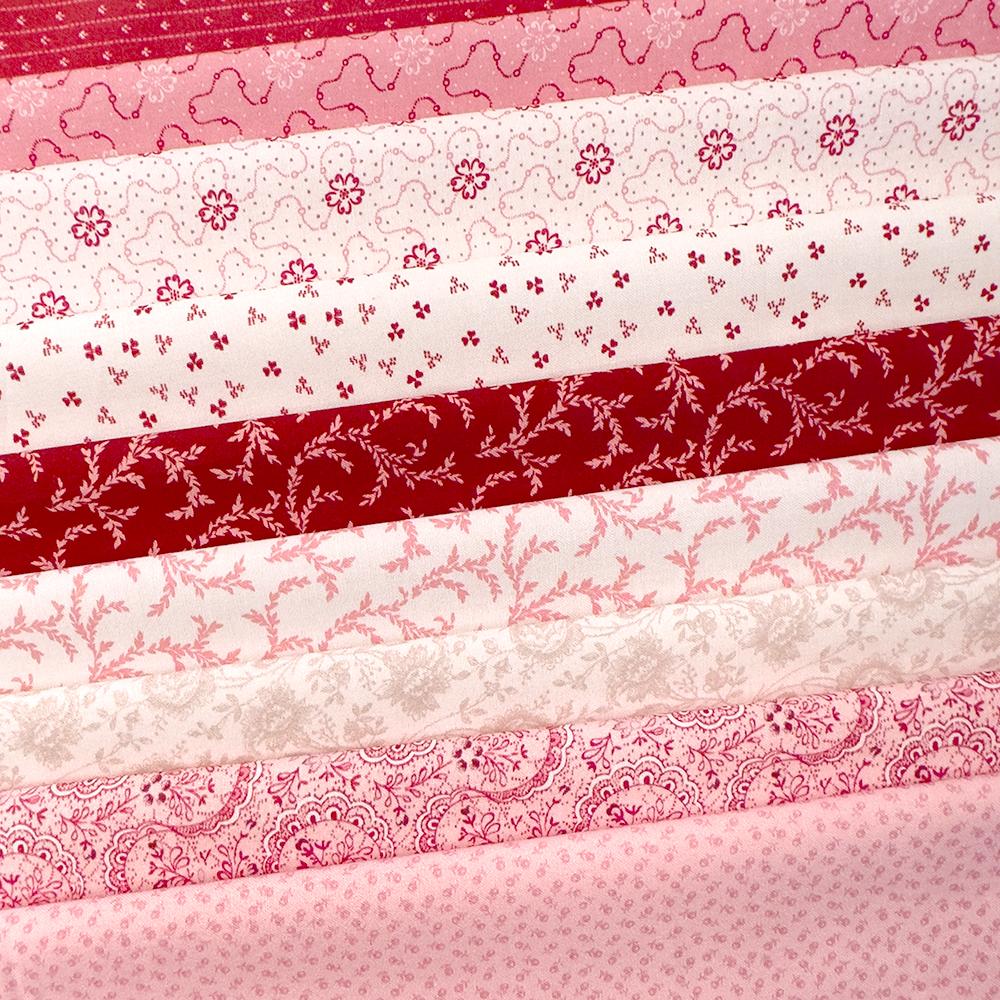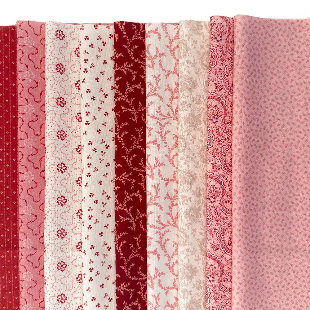 Victoria by P&B Textiles features timeless florals and romantic prints in rich reds, soft pinks, and creamy neutrals—perfect for traditional quilts and heirloom projects. This fat quarter bundle includes 9 pieces at 18" x 21".