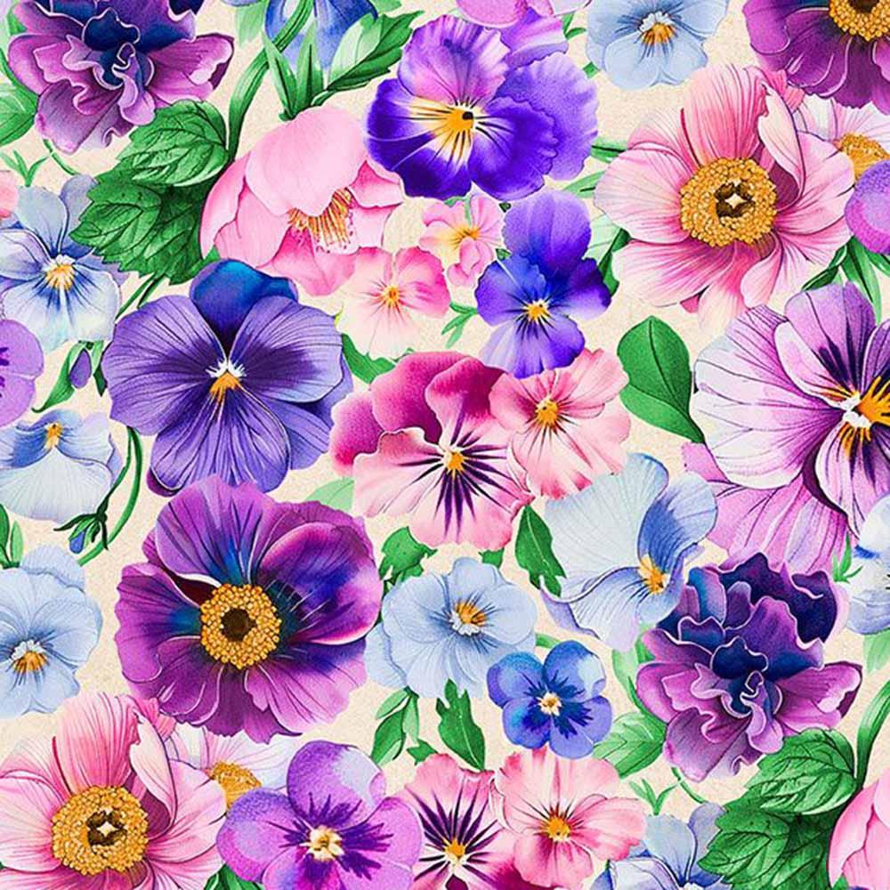 Wilmington Prints - Pansy Fields by Bruce Parks - Packed Florals - Cream - 108" Wide Yardage
