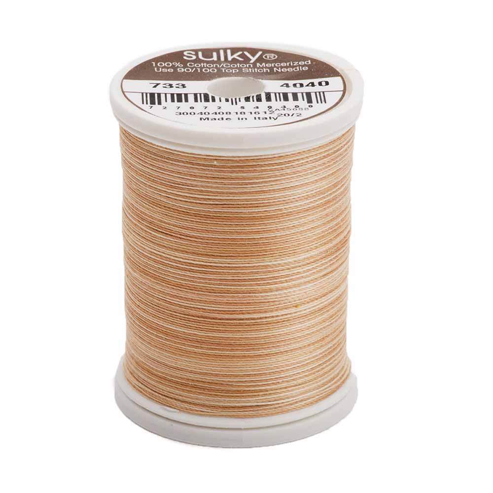 You will be dazzled and amazed at the intriguing results you will get with Sulky 30 Wt. Cotton Blendables thread. These exciting, multicolor threads are a masterful blend of different colors within the same range of tone and intensity, with random, subtle color changes every 2-1/2 to 5 inches! No other thread does this! Our 30 Wt. Cotton thread is 1/3 thicker than your standard 40 Wt. quilting cotton. This allows your quilting or appliqué to stand out from the crowd! All Sulky Cotton Threads are premier quality, long staple, highly mercerized Egyptian cotton with a matte finish to create a soft, warm, natural look and feel. ALL our cotton thread comes from 100% Egyptian Cotton that is grown in Egypt. Most critical to its quality is that it is dyed and finished in Italy.