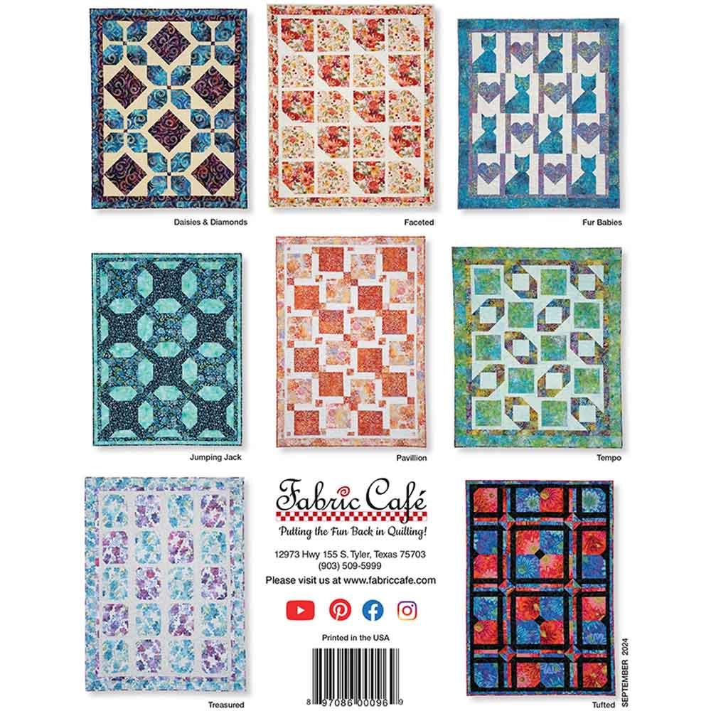 8 quilt designs written for 3 sizes- Lap, Twin and Queen/King. Easy to kit-3, 1-yard cuts make lap quilt kit. Twin uses 2 lap kits, Q/K uses 4 lap kits.