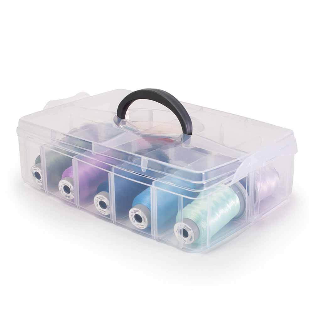 Capture the magic of the season with this stunning thread collection, designed to perfectly complement your winter-themed projects. This set features rich, shimmering hues that bring wintry elegance to your stitches, with colors ranging from deep blues and greens to vibrant oranges and purples. The collection includes 10 spools of high-quality polyester thread, each spool containing 1100 yards, ensuring you have plenty for your quilting or embroidery needs. The threads are neatly organized in a clear, portable case with a sturdy handle, making it easy to carry and store, while the individual spools are displayed on a convenient holder for easy access.
