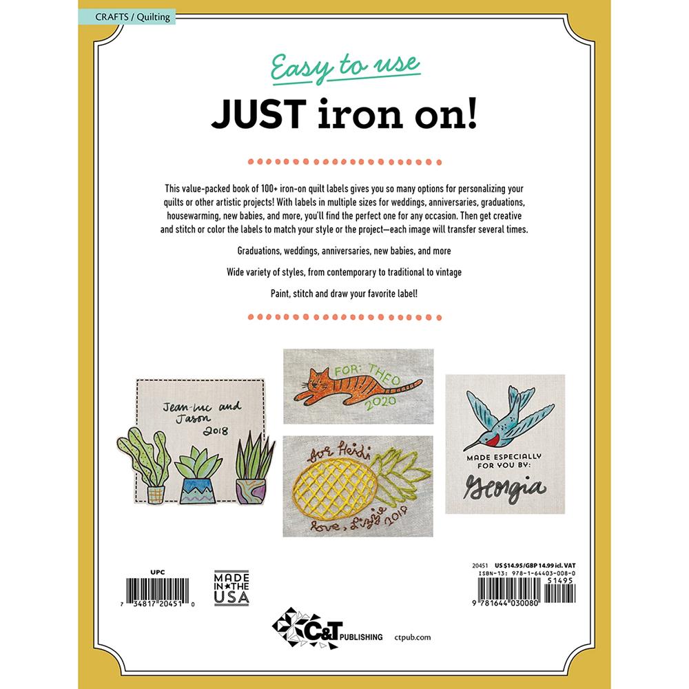 Labels for every occasion. Follow up to the popular “Best Ever Iron-on quilt Labels”. 100+ Iron-on quilt labels featuring labels for gift quilts. Easy to use, just iron on (each design transfers several times).