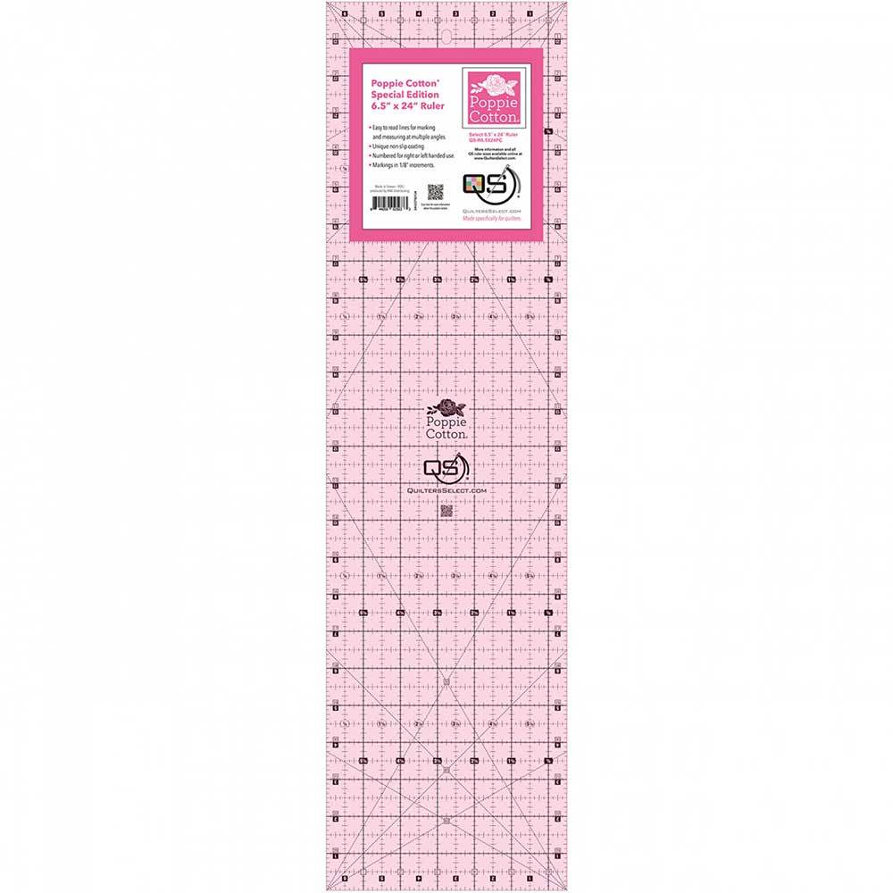 Quilter's Select Pink Poppie Cotton Non-Slip Ruler 6-1/2in x 24in