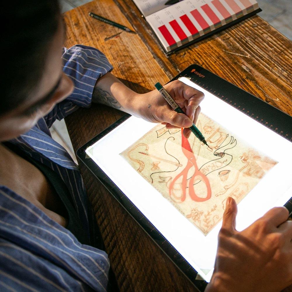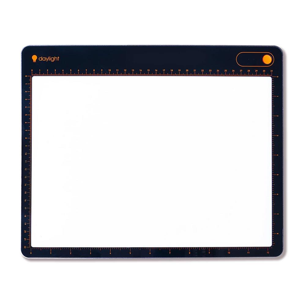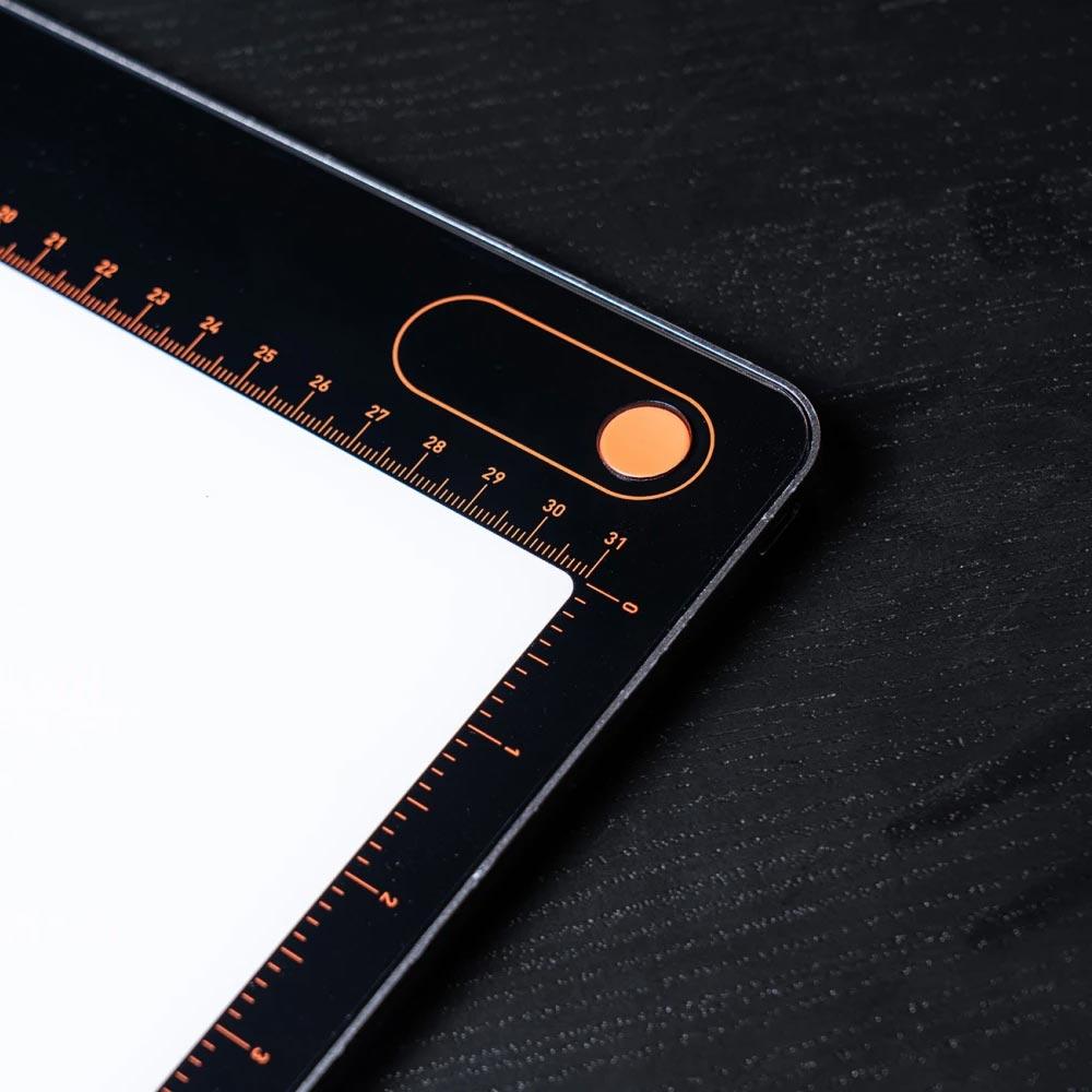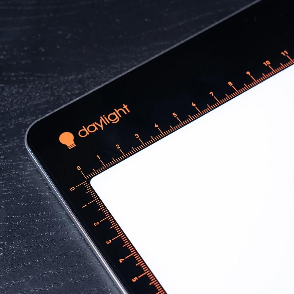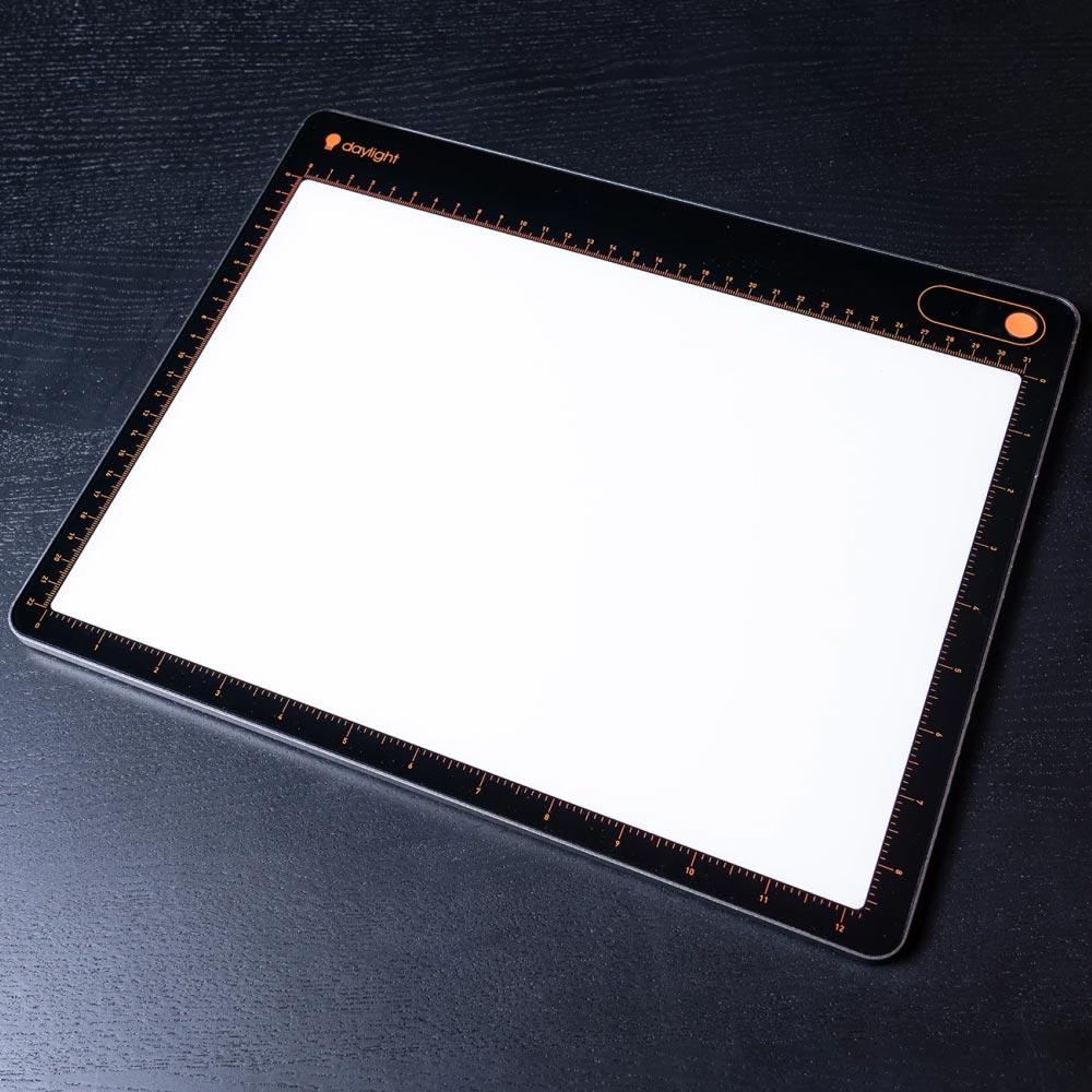 A cordless, USB-C rechargeable lightpad designed for tracing, papercraft, quilting, and vinyl weeding. Ultra lightweight and ultra slim, the Tabla Go™ is fully portable in A4 size, with a strong aluminium casing and tough non-scratch tracing surface (A6 hardness) for maximum durability. Premium daylight 6,000K LEDs for true-color accuracy combined with edge-to-edge illumination and contrast. 3-step illumination levels to match your paper weight and fabric thickness, and ruled edge measurement scale in cm and inches for visual accuracy.