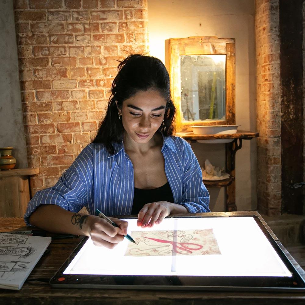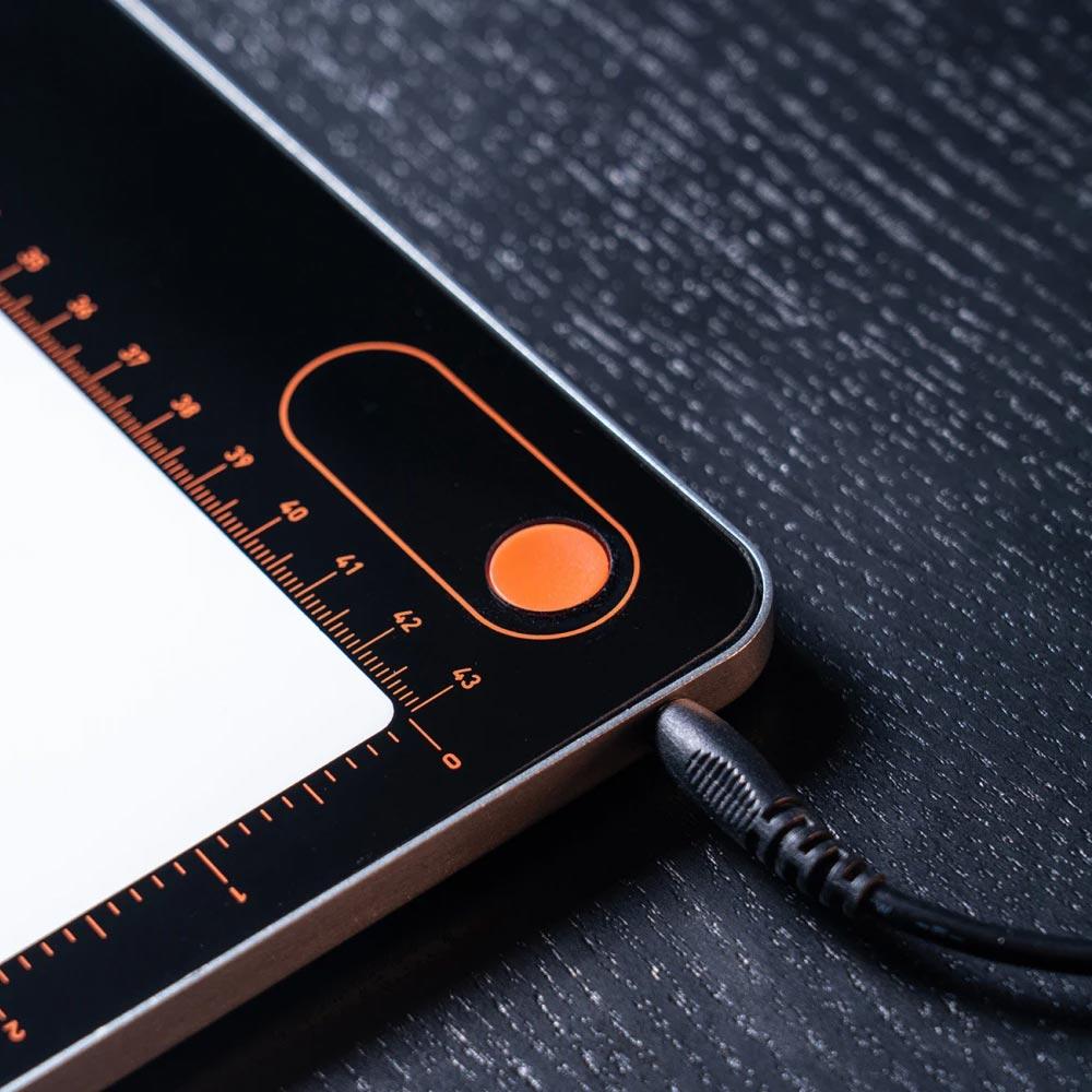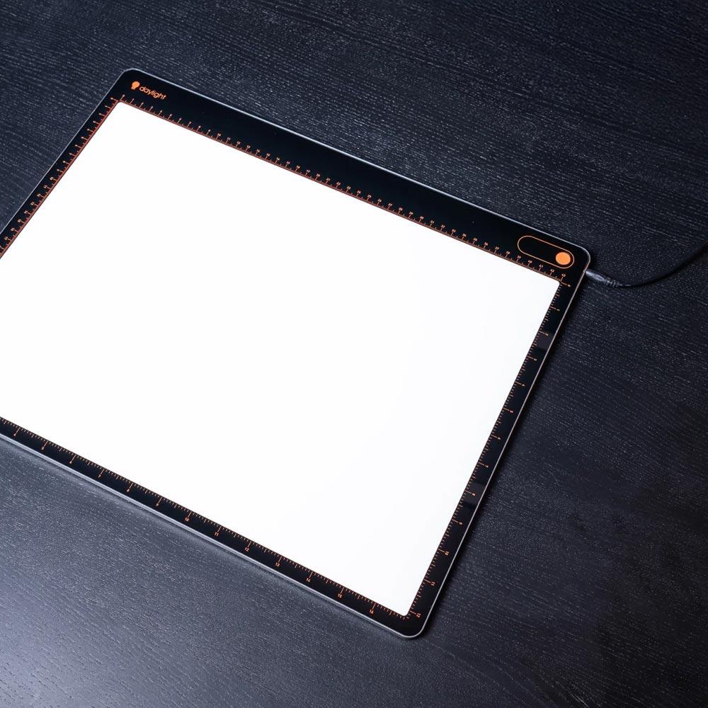 Large A3 size lightpad designed for tracing, papercraft, quilting, and vinyl weeding, with tracing capability across the full A3 tracing area. Ultra lightweight and ultra slim, the Tabla XL™ offers a wide spread of light with a strong aluminium casing and tough non-scratch tracing surface (A6 hardness) for maximum durability. Premium daylight 6,000K LEDs for true-color accuracy combined with edge-to-edge illumination and contrast.
