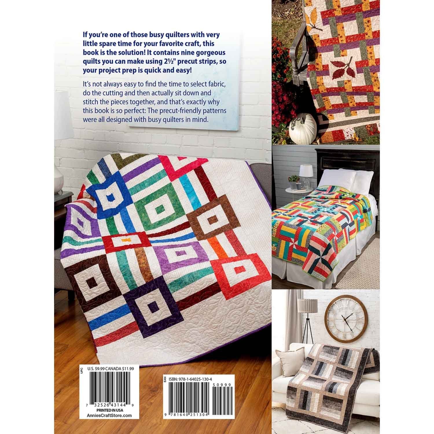 If you're one of those busy quilters with very little spare time for your favorite craft, this book is the solution! It contains nine gorgeous quilts you can make using 2 1/2 inch precut strips, so your project prep is quick and easy!