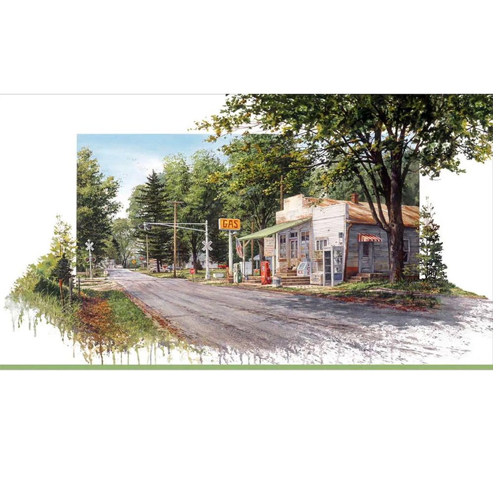 Hometown Gas Station - Hometown by Luke Buck - P&B Textiles - 24" x 43" Panel