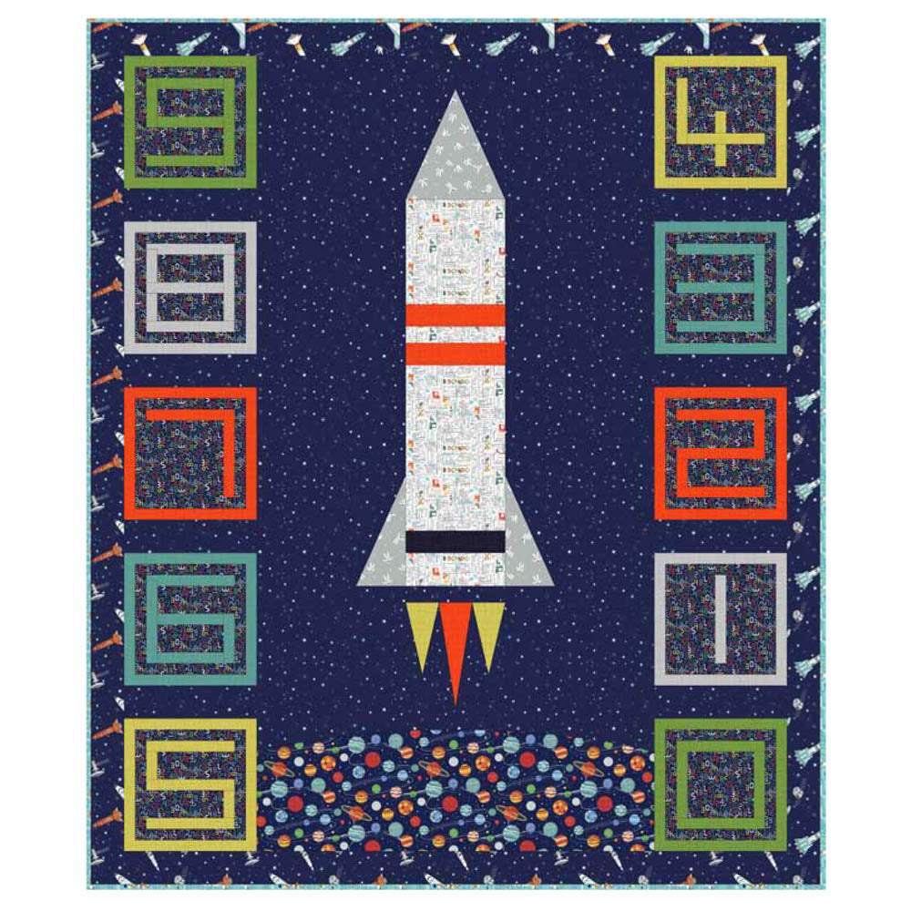 9, 8, 7...countdown to blast off! Designed by Lynne Goldsworthy, this pattern features a rocket ship and numbers zero through nine around the border.