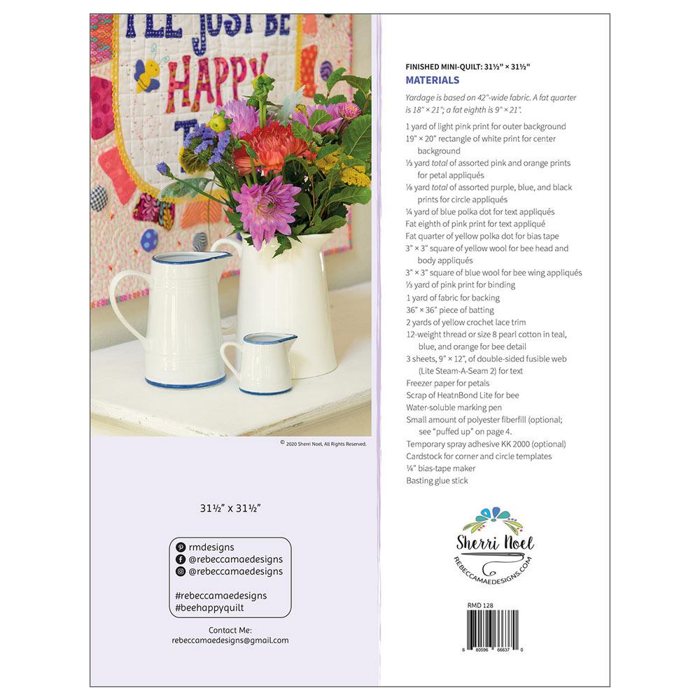 Be Happy is a sweet wall hanging that is customizable. Templates for all the letters are included so you can add your own saying and make it your own. Instructions include techniques on fusible applique, wool applique, circle applique and paper template applique. In addition, embroidery stitches are included for the bee applique. * Printed Paper Pattern * Finished Size: 32in x 32in * Final Product: Wall Hanging * Paper Templates Included * Technique Used: Applique / Hand Embroidery / Stitchery * Skill Level: Intermediate