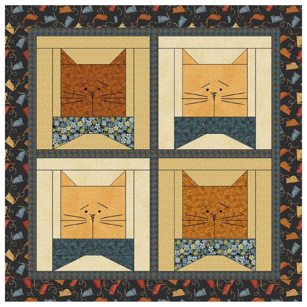 The Cats N Bows pattern is sew full of cute feline charm. Designed by Cheryl Haynes and finishes at 36" square.