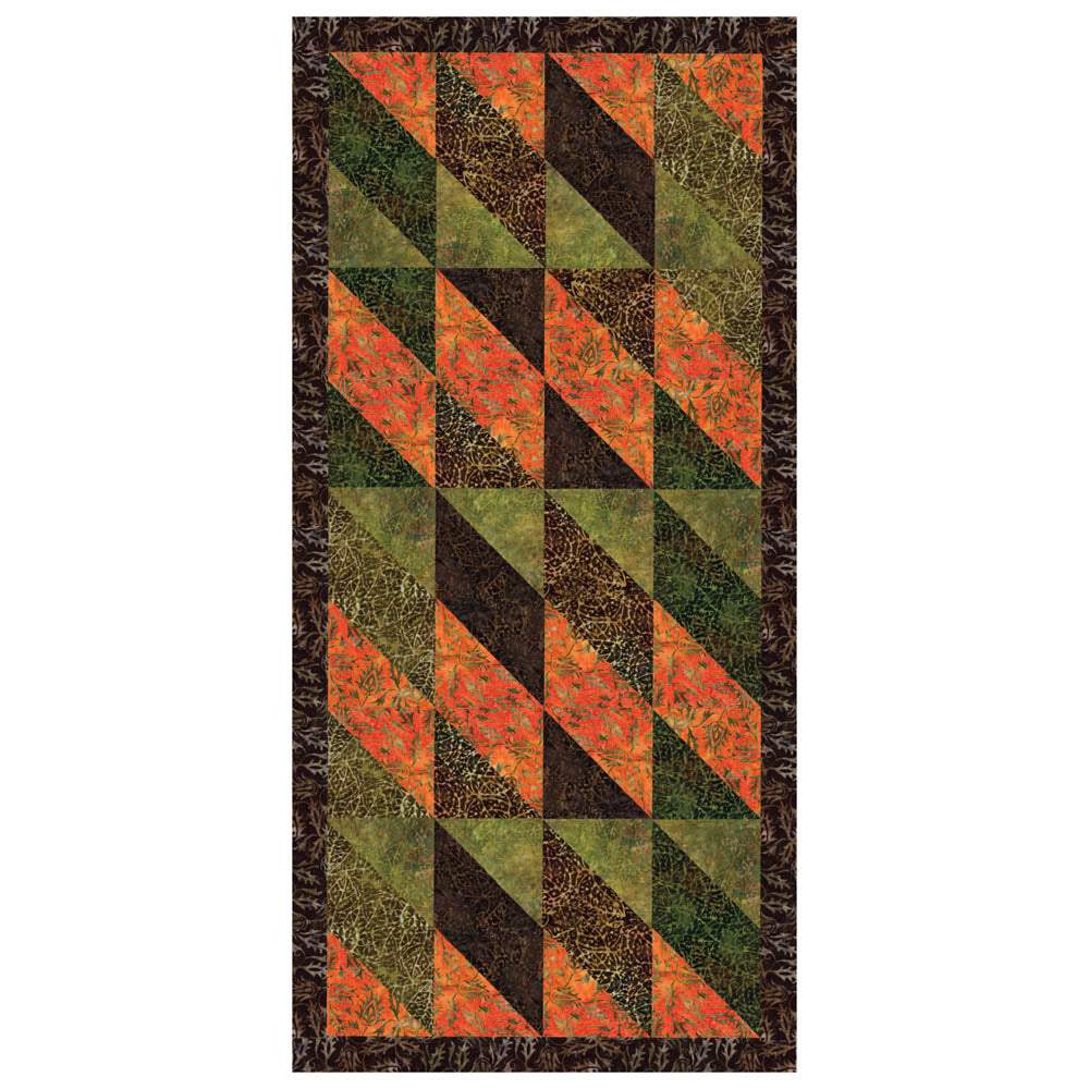 Maple Leaf is a beautiful new quilted runner using our Wild Garden Balis collection. The triple dyed fabrics really bring out a fall palette with bright oranges, and earthy browns and greens. The geometric shapes give it a modern flair for any home. Pattern only.