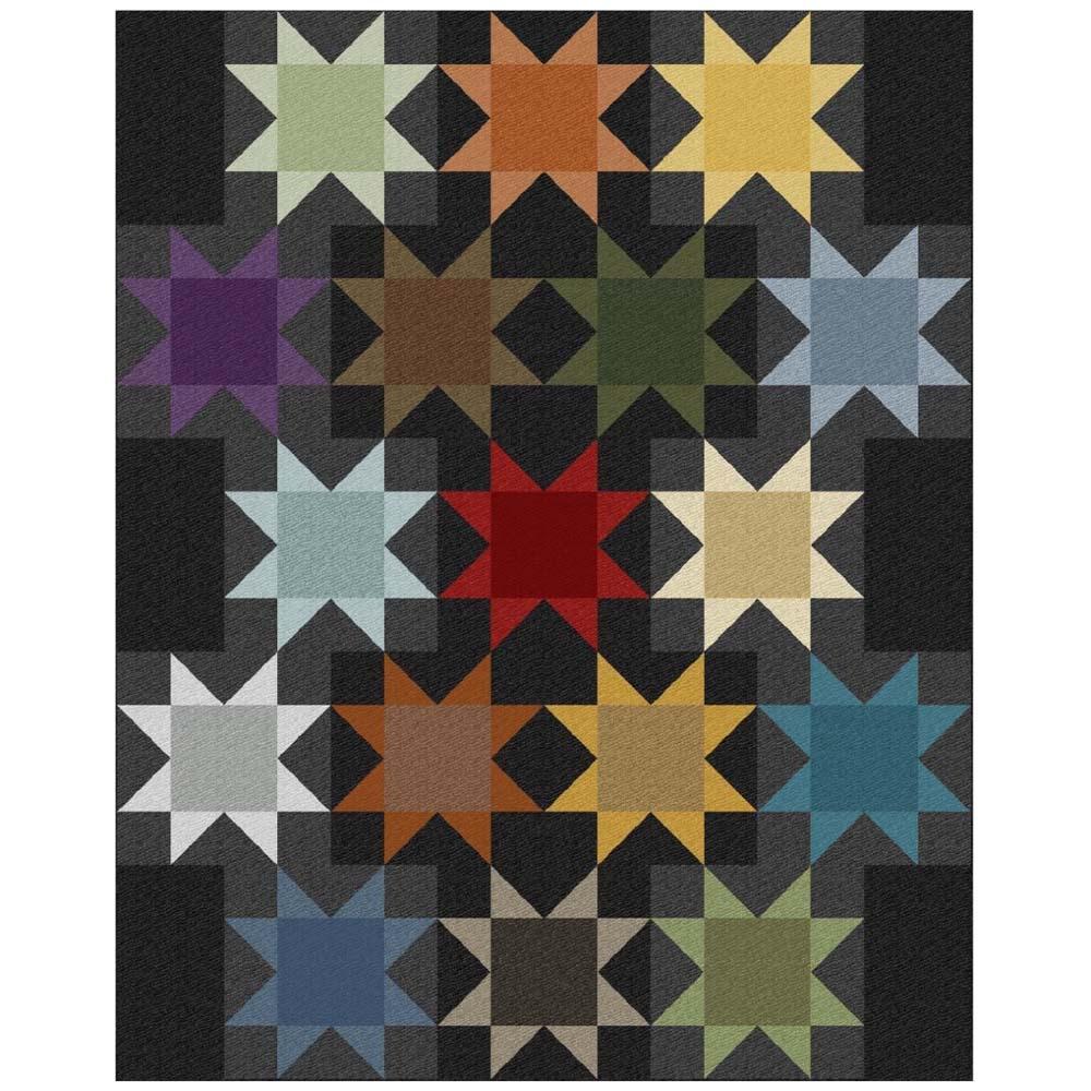 Flowers are just as colorful at night! These star blocks on a dark background really pop. Pattern includes instructions for a finished quilt with or without borders.