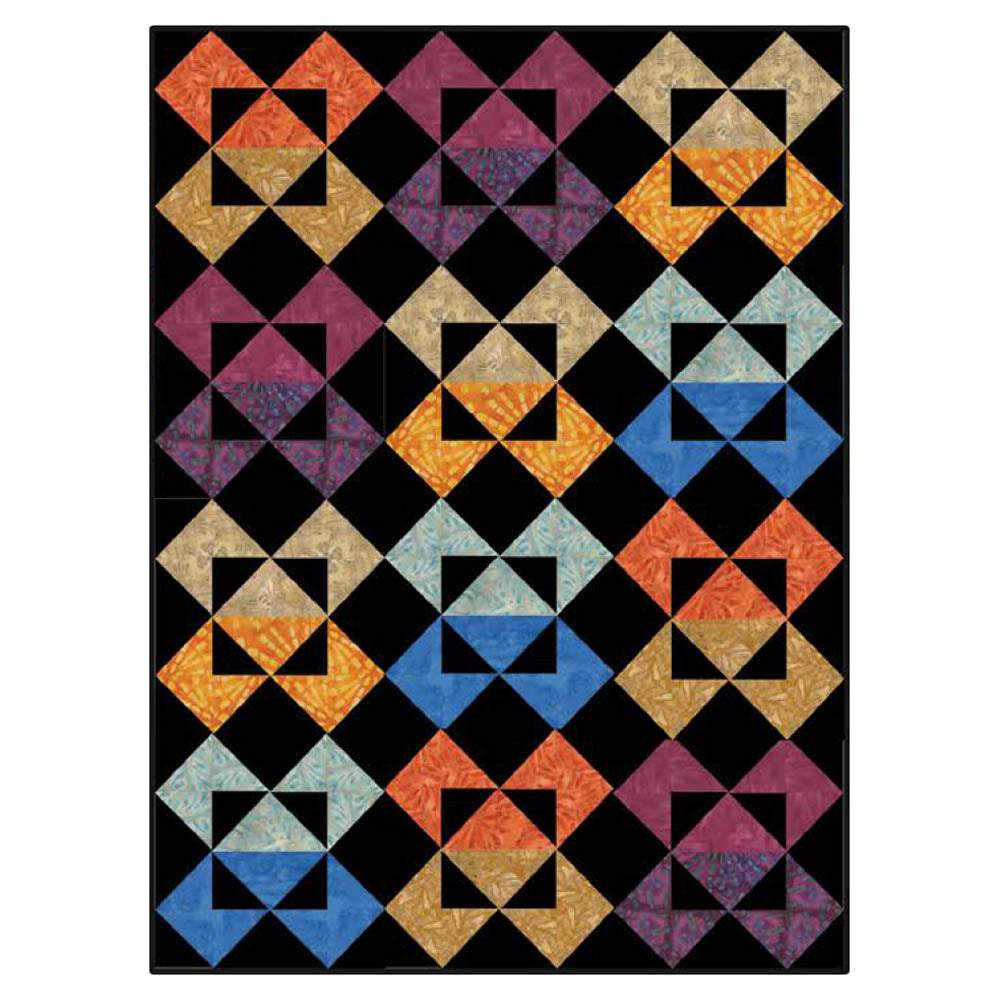 Bold and bright Bali batiks make a stunning graphic statement! Assembly is easy, and the resulting wallhanging will be the center of attention in any room. Pattern only.