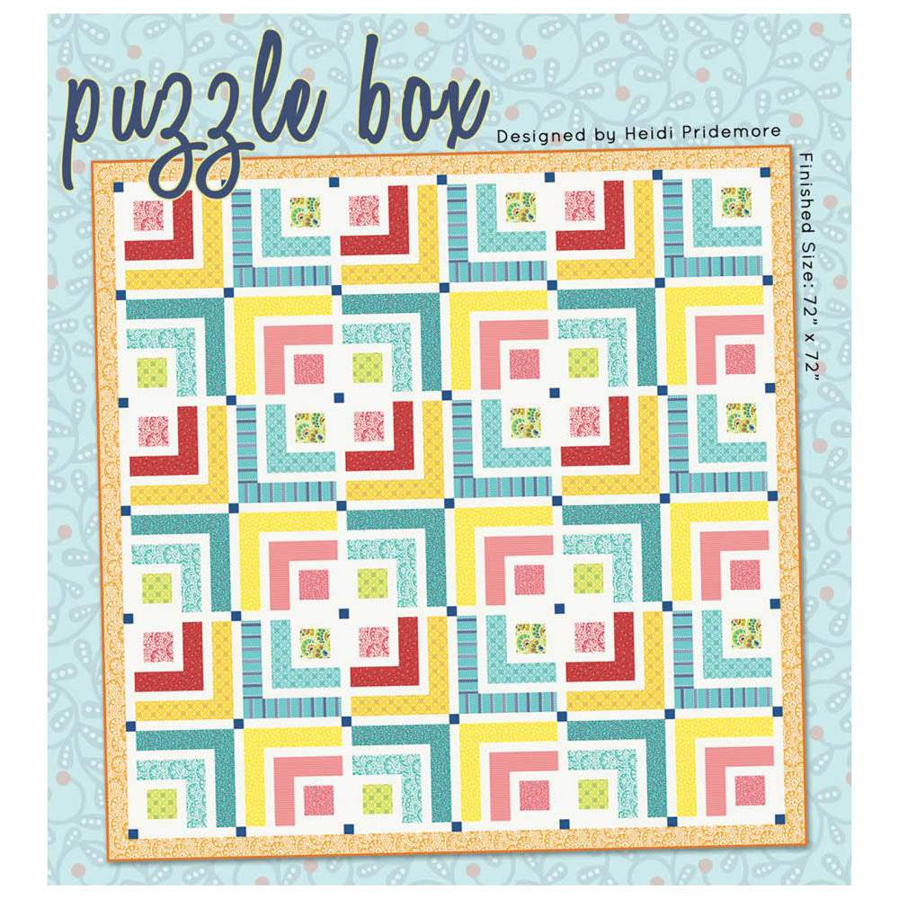 The only “puzzle” about this cool quilt is why we didn’t show it to you sooner! (Everyone who sees it falls in love with it.) Heidi took Nancy’s cool turquoise, warm yellow, and coral textures and mixed them with an exuberant paisley to create a block with a modern twist. The blocks seem to float, and then they fit together like a favorite puzzle. Tiny little navy accents tie the entire quilt together. The sunny colors and fun design will bring a touch of sunshine to any room in your home. Pattern only.
