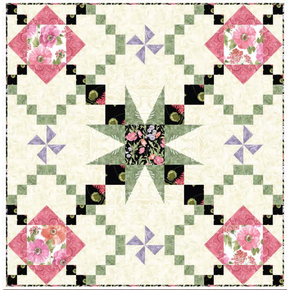 Ann’s beautiful new quilt takes classic geraniums and colored marble textures and combines them with a unique and modern design that is sure to get everyone’s attention. A great addition to your home.