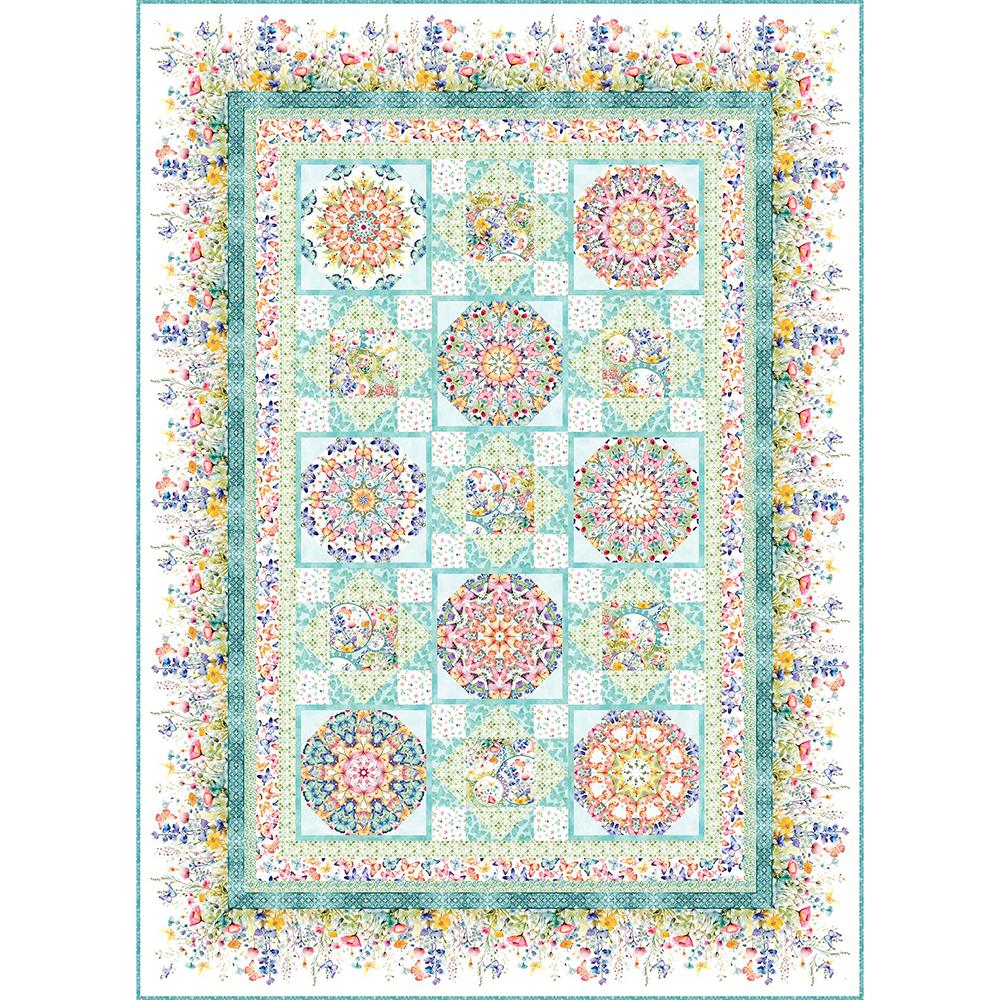 Kaleidoscope style medallion blocks are featured in this pieced project designed by Jason Yenter. Finished size is 63" x 87". Pattern only.