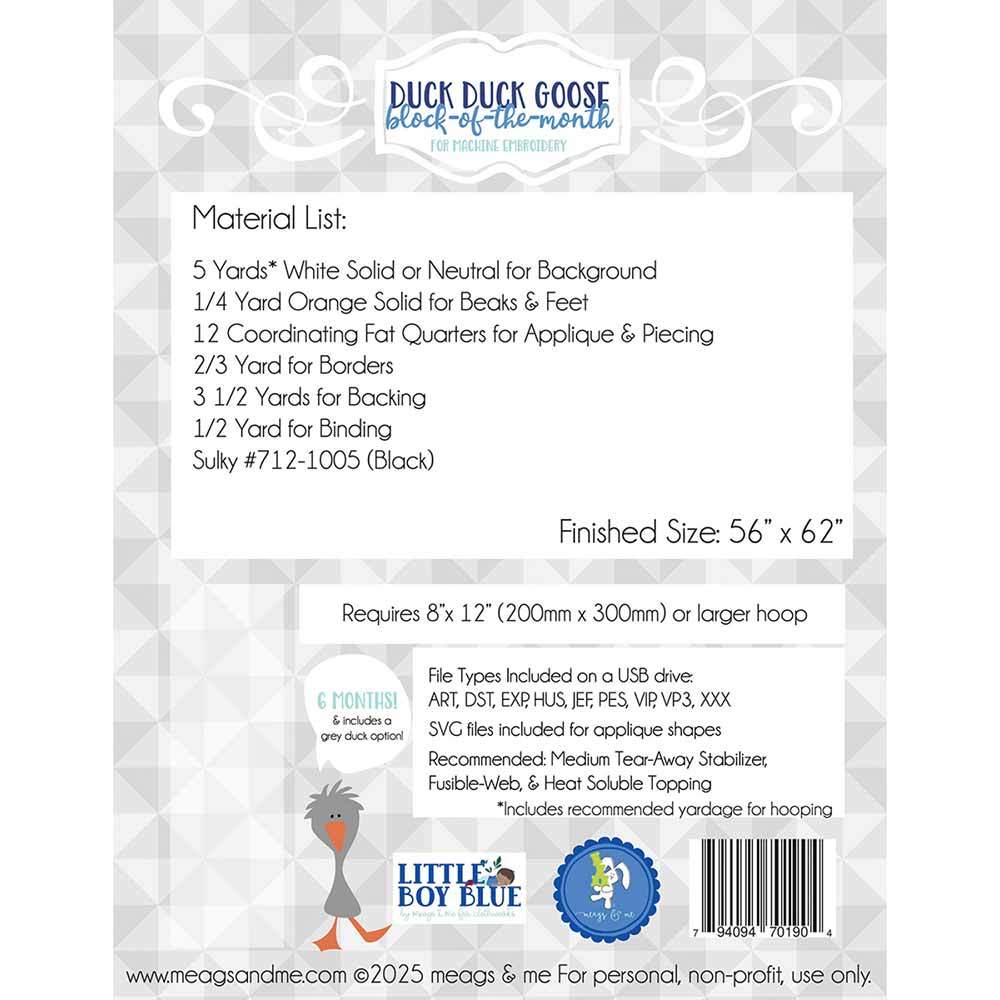 Duck Duck Goose Block of the Month USB for Machine Embroidery