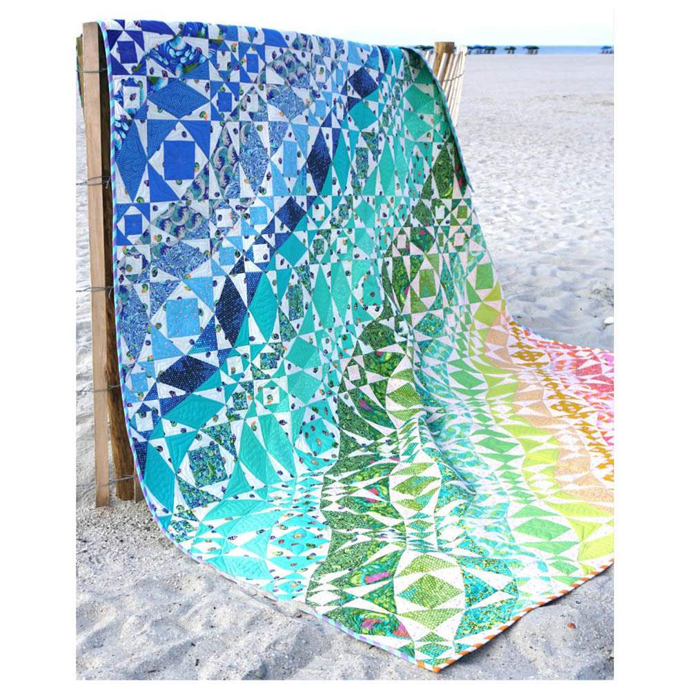 This beautiful quilt is both paper pieced and traditionally pieced to create these beautiful waves of color motion.