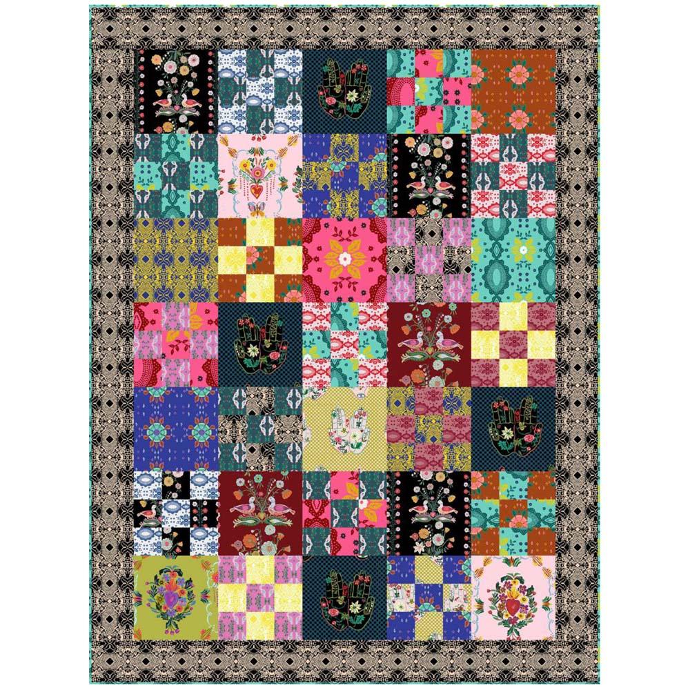 Fussy-cut a folk-art bouquet of Nine-patch blocks and squares. This simple yet striking design overflows with pretty patterns.