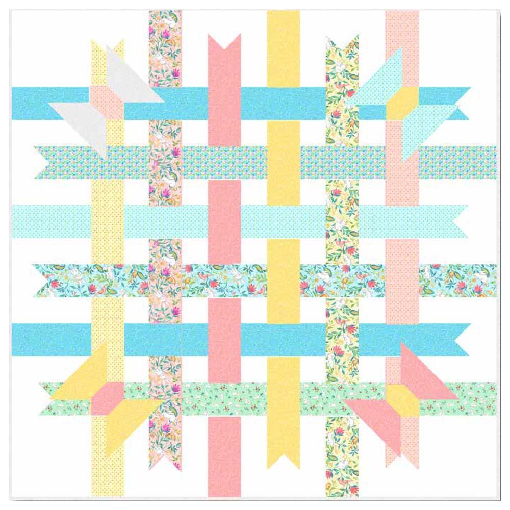 A unique woven design. Pattern finishes at 74" x 74" and has an intermediate skill level.