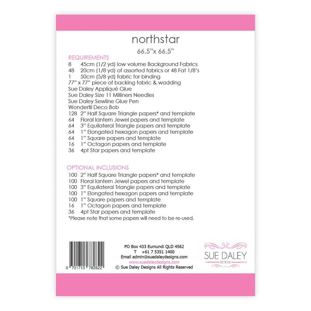 Approx. size: 66 1/2" x 66 1/2" This eye-catching quilt is made from a selection of curated fabrics across various designer collections. Focusing on a softer palette against a backdrop of low-volume prints allows the shapes in each star to shine independently. This beautiful design uses both English Paper Piecing and Applique techniques and comprises 16 blocks using 7 different EPP shapes.