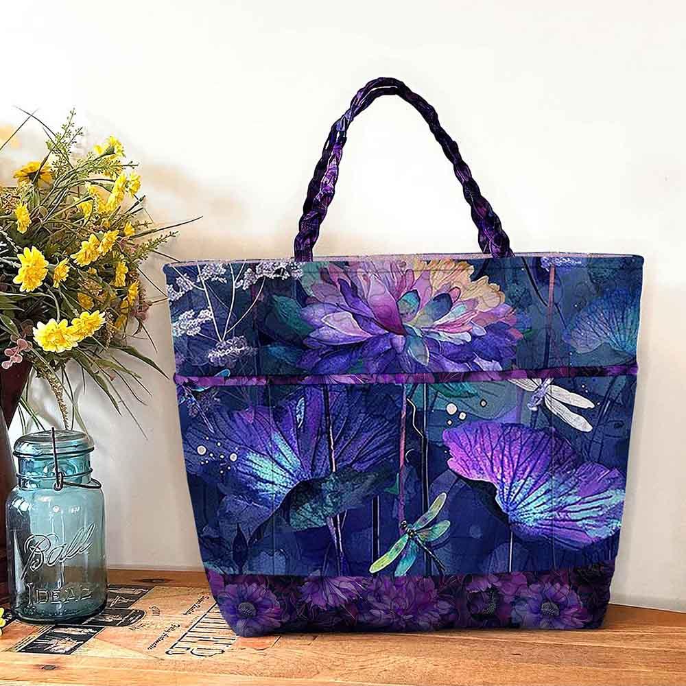 The unique panel you choose will make a fun, fascinating tote bag. Pick a dark handle and bottom and make the panel the star of the show. You will love showing off your new market tote. It is roomy enough to hold your purse, shoes, lunch and anything else you need to tote.