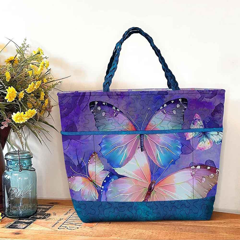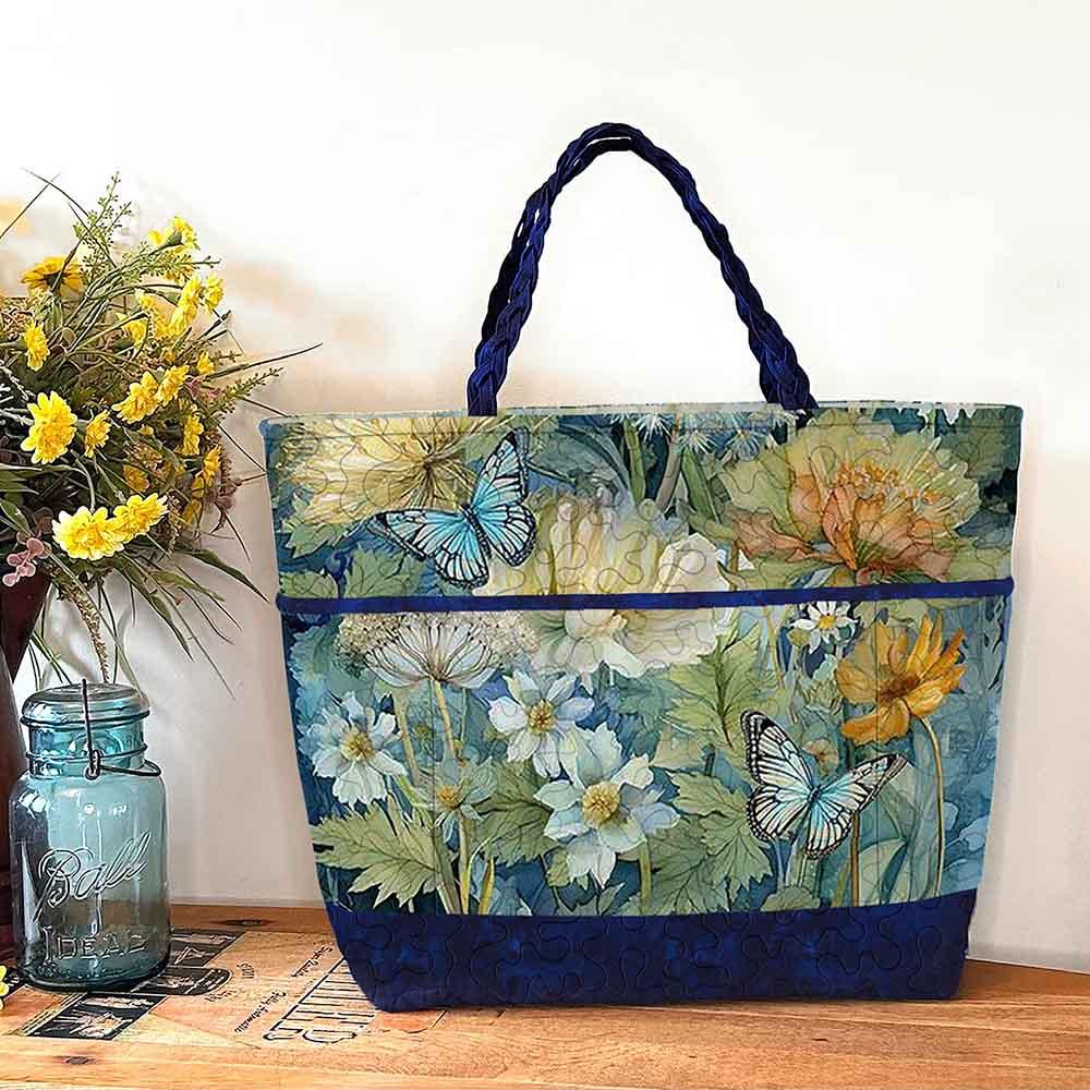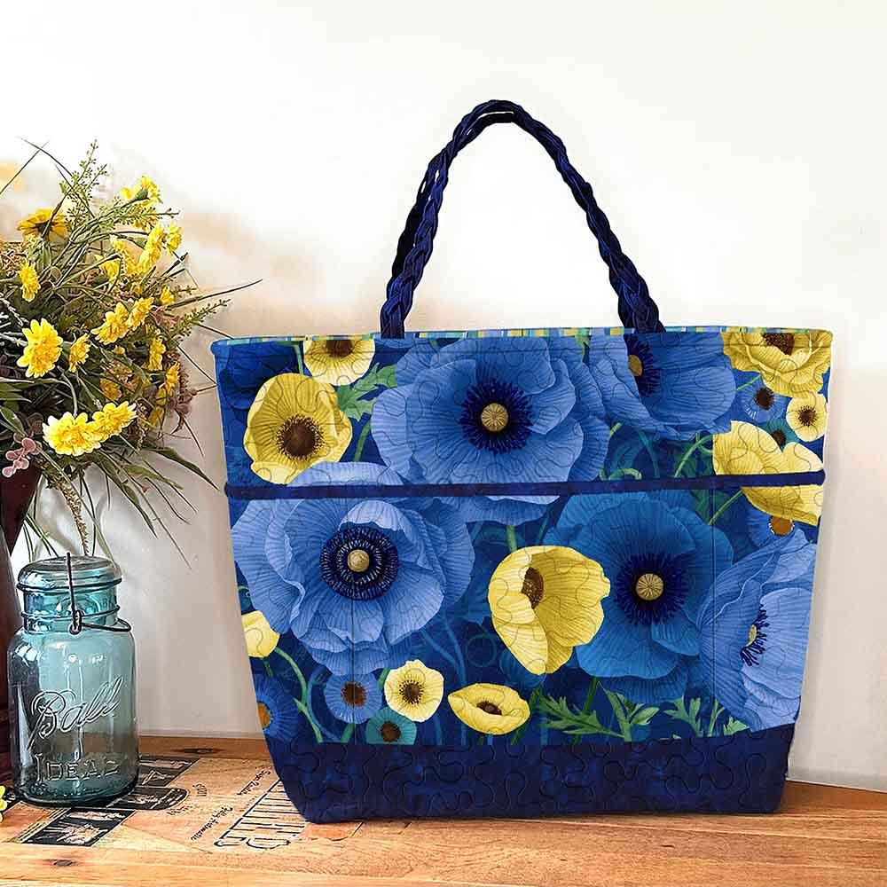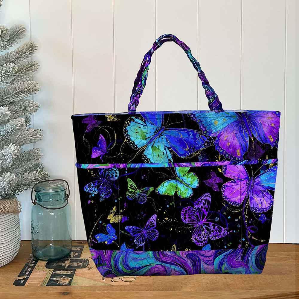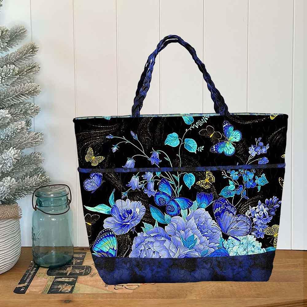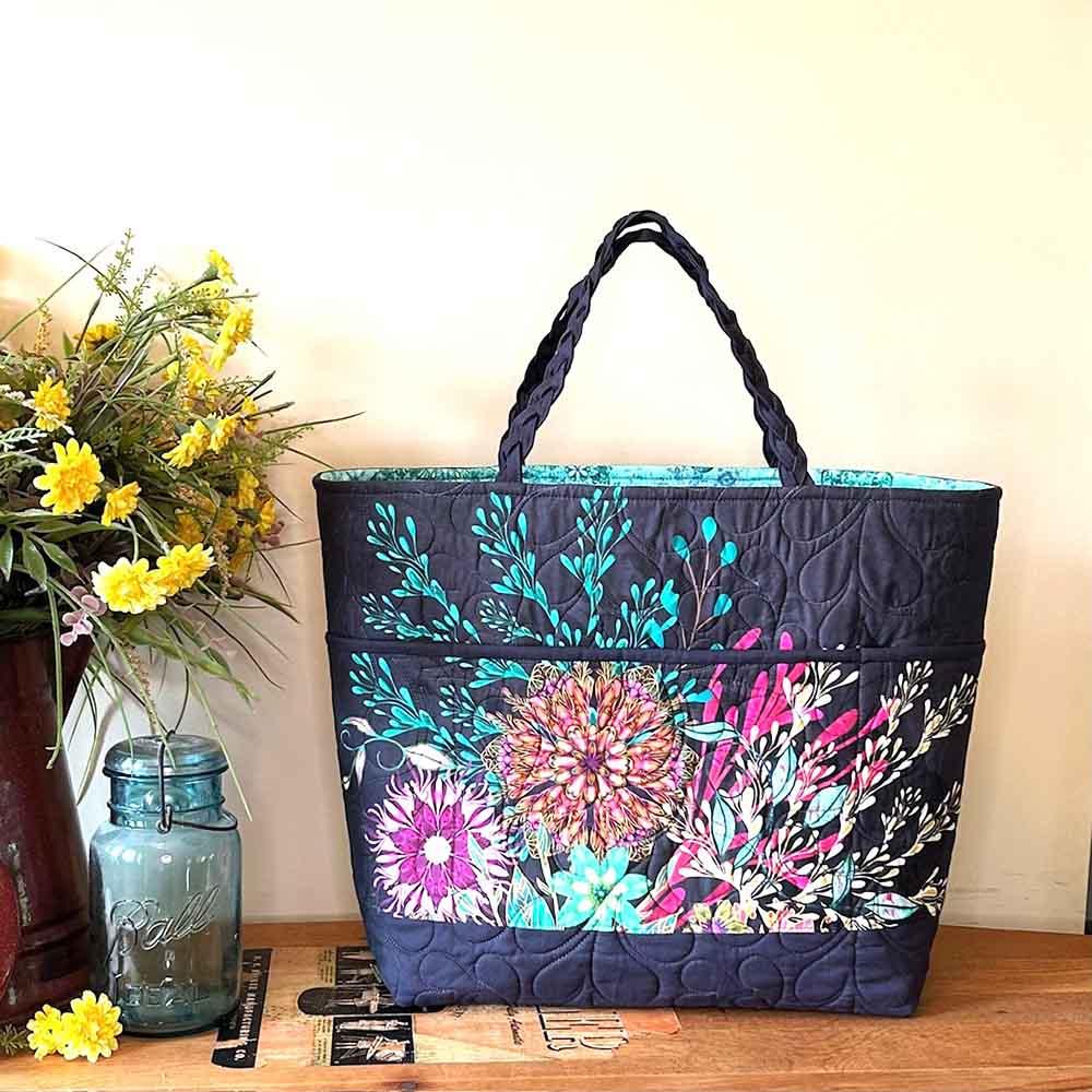 The quilted pocket inside is the perfect size to hold patterns and magazines while out shop hopping. Quilt this on your machine or send it off to the long armer. Detailed instructions with full color photos will guide you along. 2 handle options included.