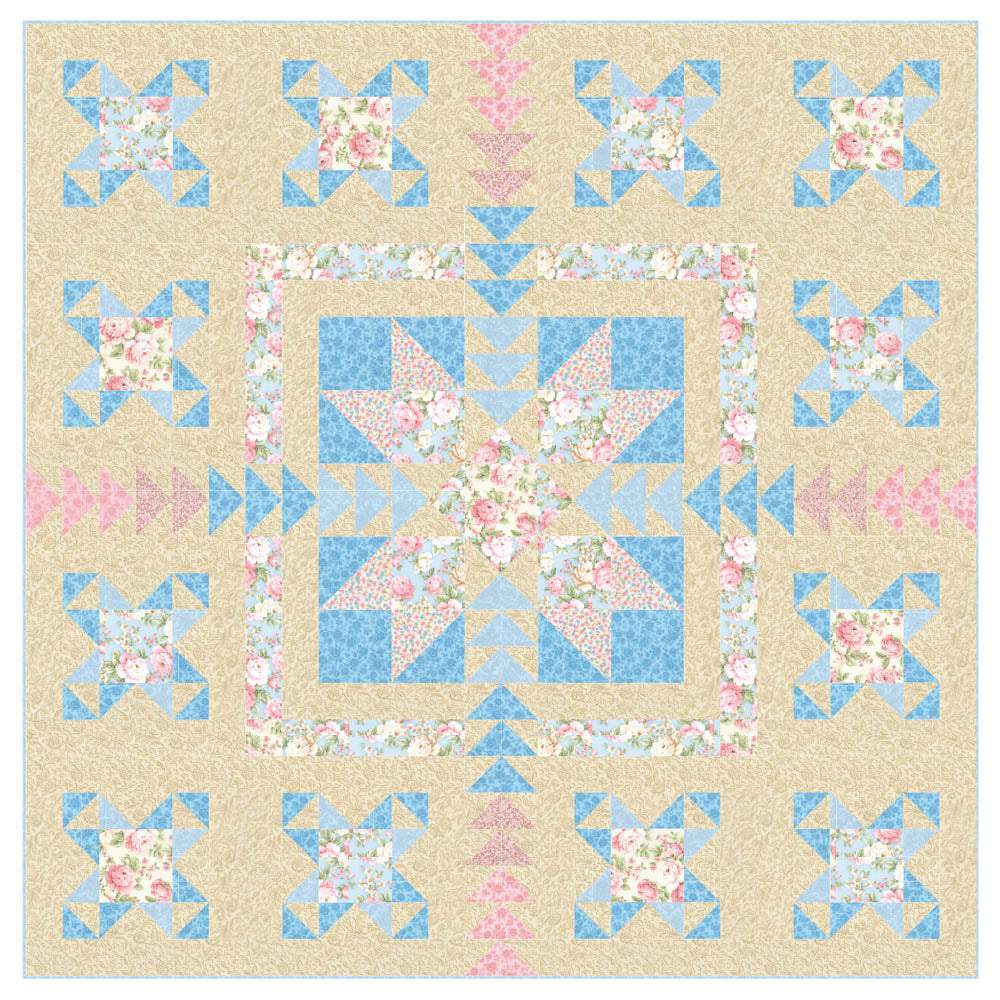 Flying geese lead your eye to the center star. The Star Garden Quilt pattern has an intermediate skill level and finishes at 78" square.