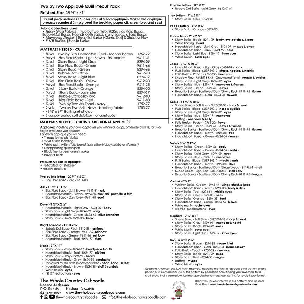 Two by Two Applique Quilt Precut Pack