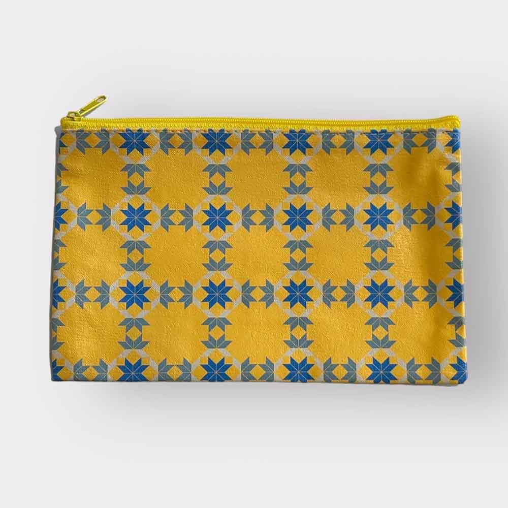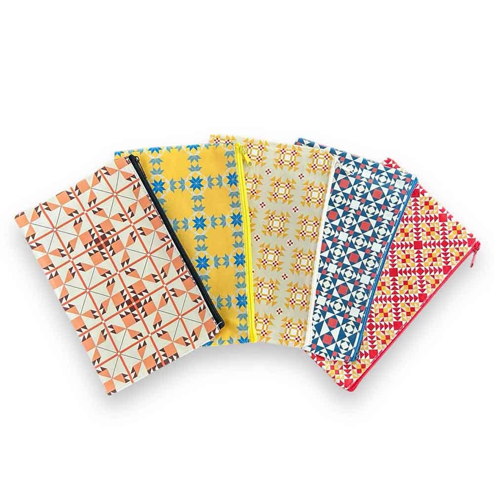 Need a hand with those? How about a pencil pouch? How about five? This set includes five cozy pencil pouches, each featuring a different color & quilt pattern. The pouches measure 8.27 in x 5.31 in, which makes them convenient for containing smaller items that you don’t want flying about. These really help when you’re on the go. 100% cotton with zipper closures. The following classic quilt patterns are featured: Young Man’s Fancy, Castle Garden, Chinese Holiday, Autumn Leaf, and Stars & Cubes.