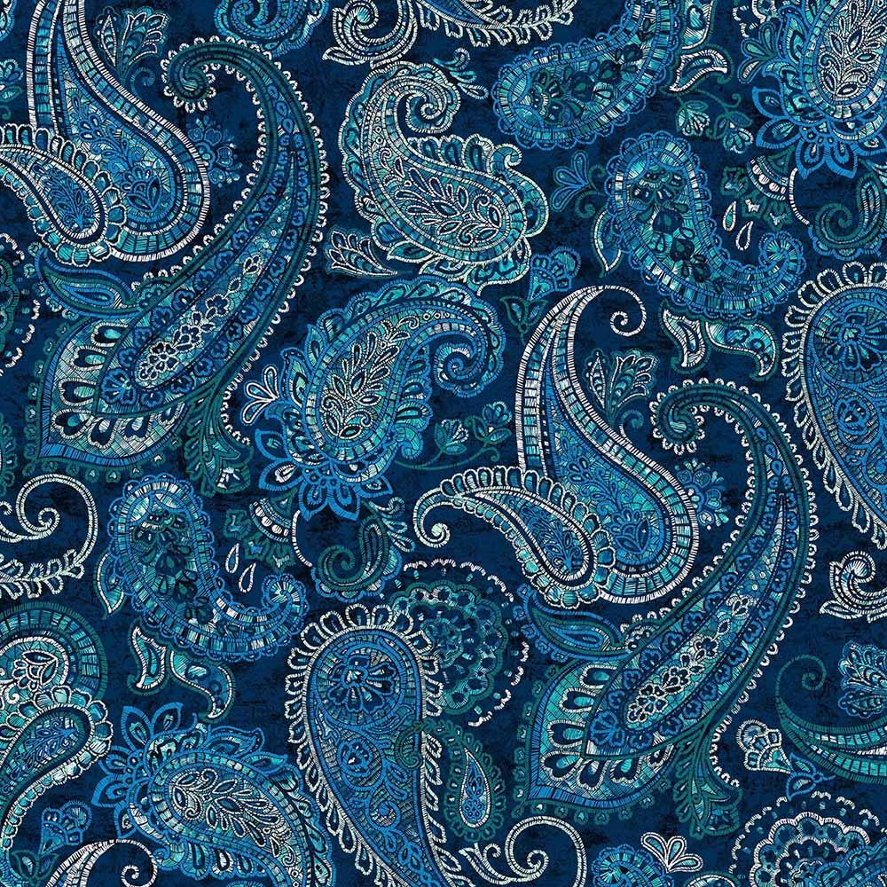 Henry Glass Fabrics - Parkside - Large Embroidered Paisley 2.5 Yard 118" Wide Yardage - Teal