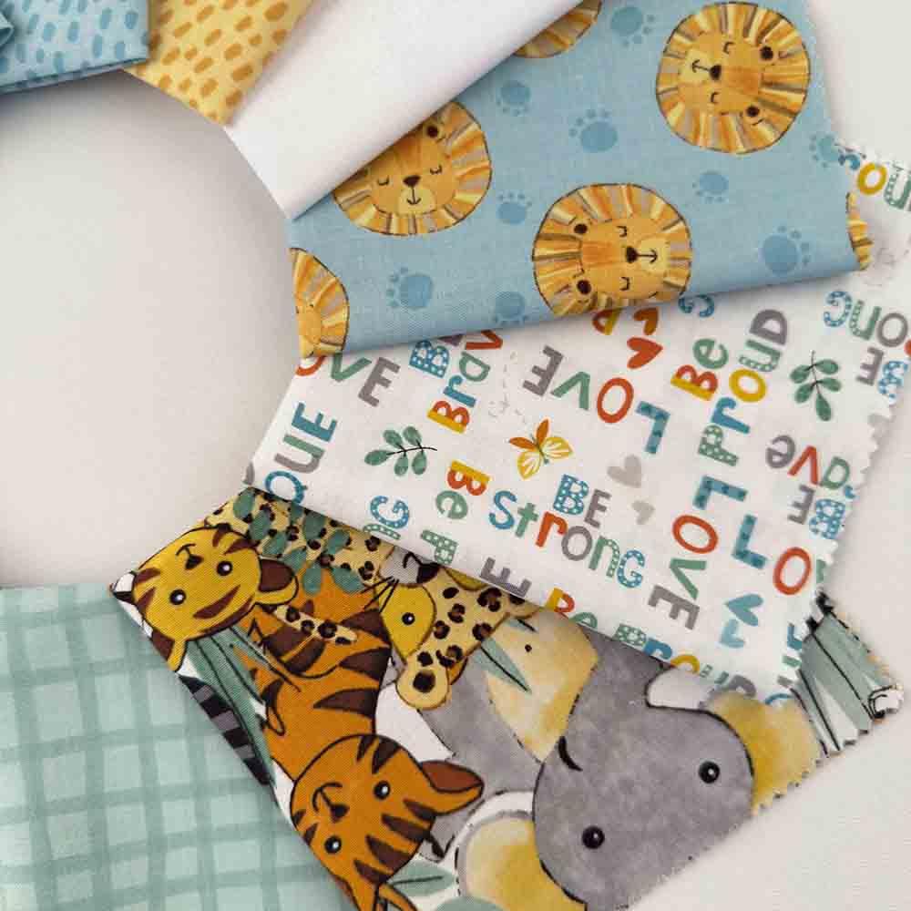 The Safari Snuggles collection by Jenny Faw for Wilmington Prints brings the spirit of adventure to life with a gentle, whimsical touch and a vibrant color palette. Perfect for nursery projects, children’s quilts, and playful décor.