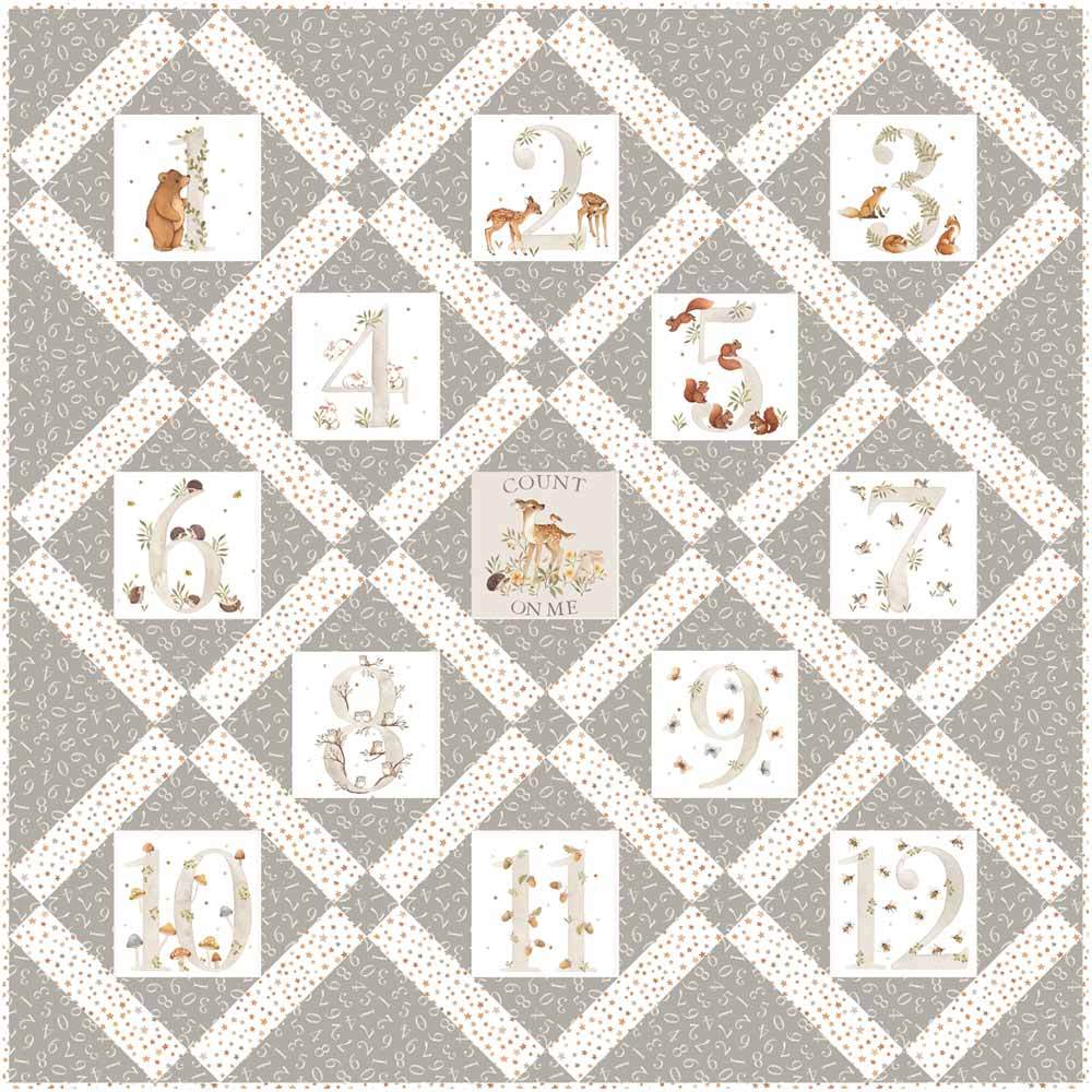 The Counting Friends project features delightful prints filled with cozy woodland charm from the Count On Me collection by Nina Stajner for Dear Stella all in a calming color palette. Learn to count with some help from the butterflies, mushrooms and bees. Kit includes pattern by TJ Wright Quilts and all the fabrics needed, including panel, for the top and binding of a 55" x 55" quilt. Backing available separately, 4 yards x 44" wide recommended.