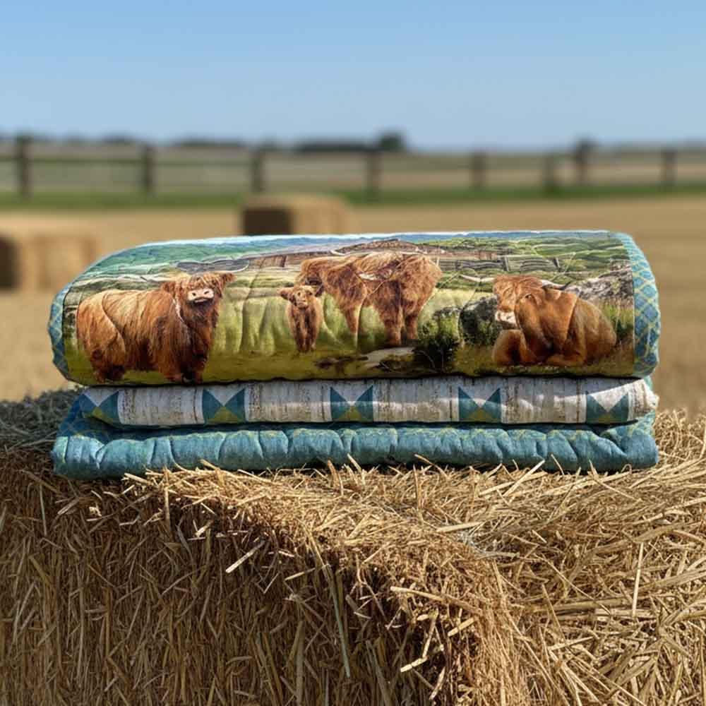 This sweet and friendly family of highland cows are ready to bring the perfect amount of rustic charm to your favorite space. The Highland Stars Kit includes pattern by Goode Day Quilts and all the fabrics needed, including panel, for the top and binding from the Highland Home digital collection by Jason Kirk for Northcott. Finished size of this beginner project is 69" x 80" quilt. Backing available separately, 5 yards x 44" wide recommended. FREE 24" x 43" Canvas Tote Bag Panel Included with Kit!