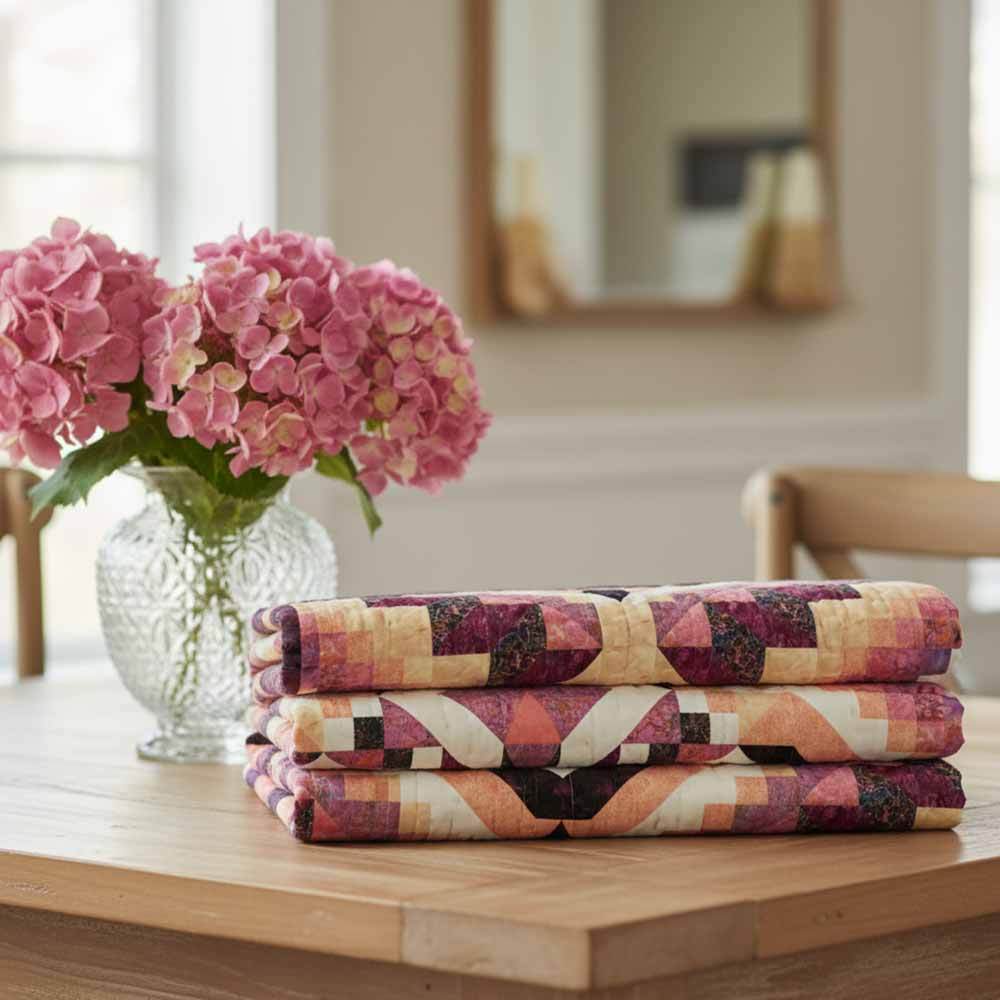 Experience the magic of "Above the Below"! With its clever use of color play and negative space, this quilt is much easier to make than it initially appears. Discover the endless creative possibilities and surprise yourself with stunning results. The Above and Below Kit includes pattern by A Lee B Creative and all the batiks needed for the top and binding from the Huckleberry collection by Hoffman Bali Batiks. Finished size of this intermediate project is 88" x 88". Backing available separately, 8 yards x 44" wide recommended.