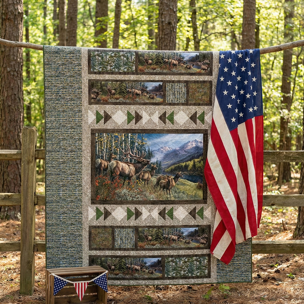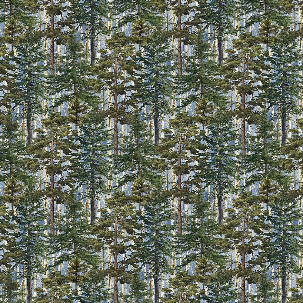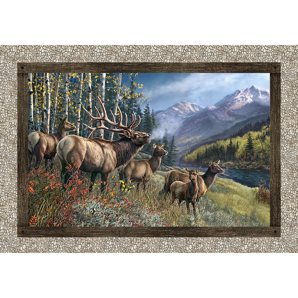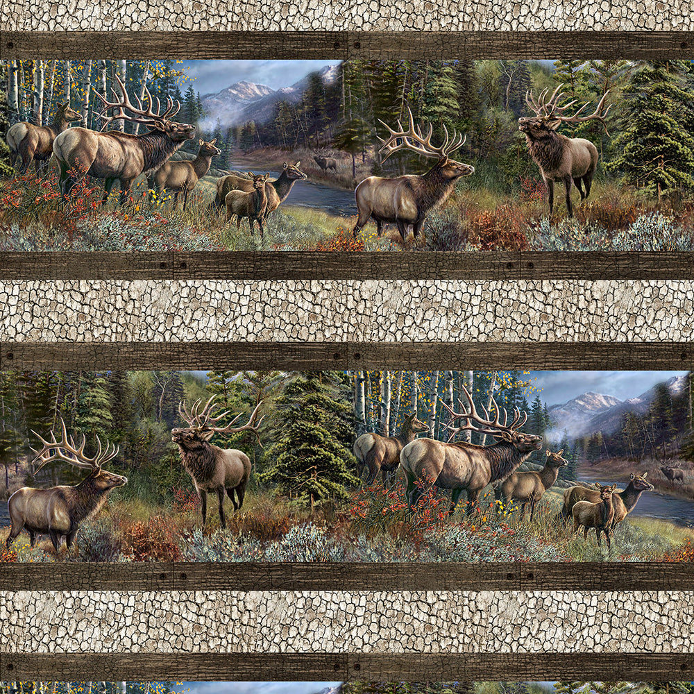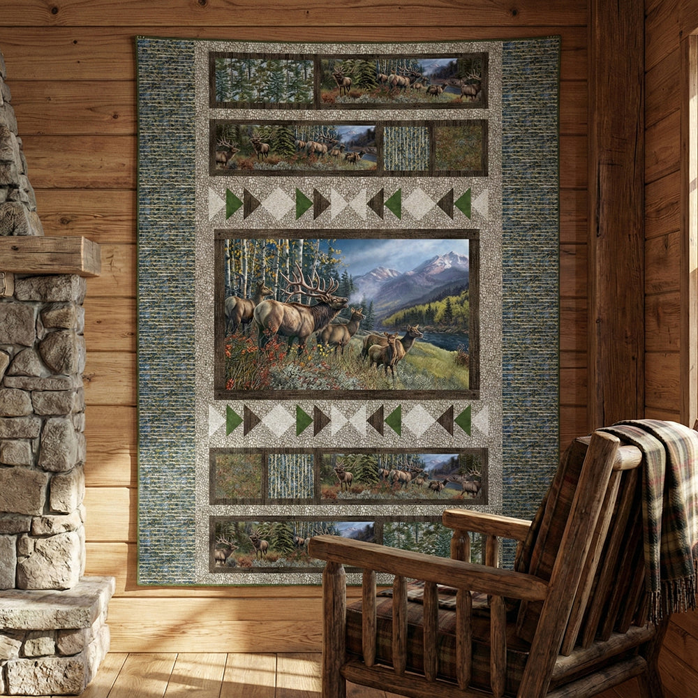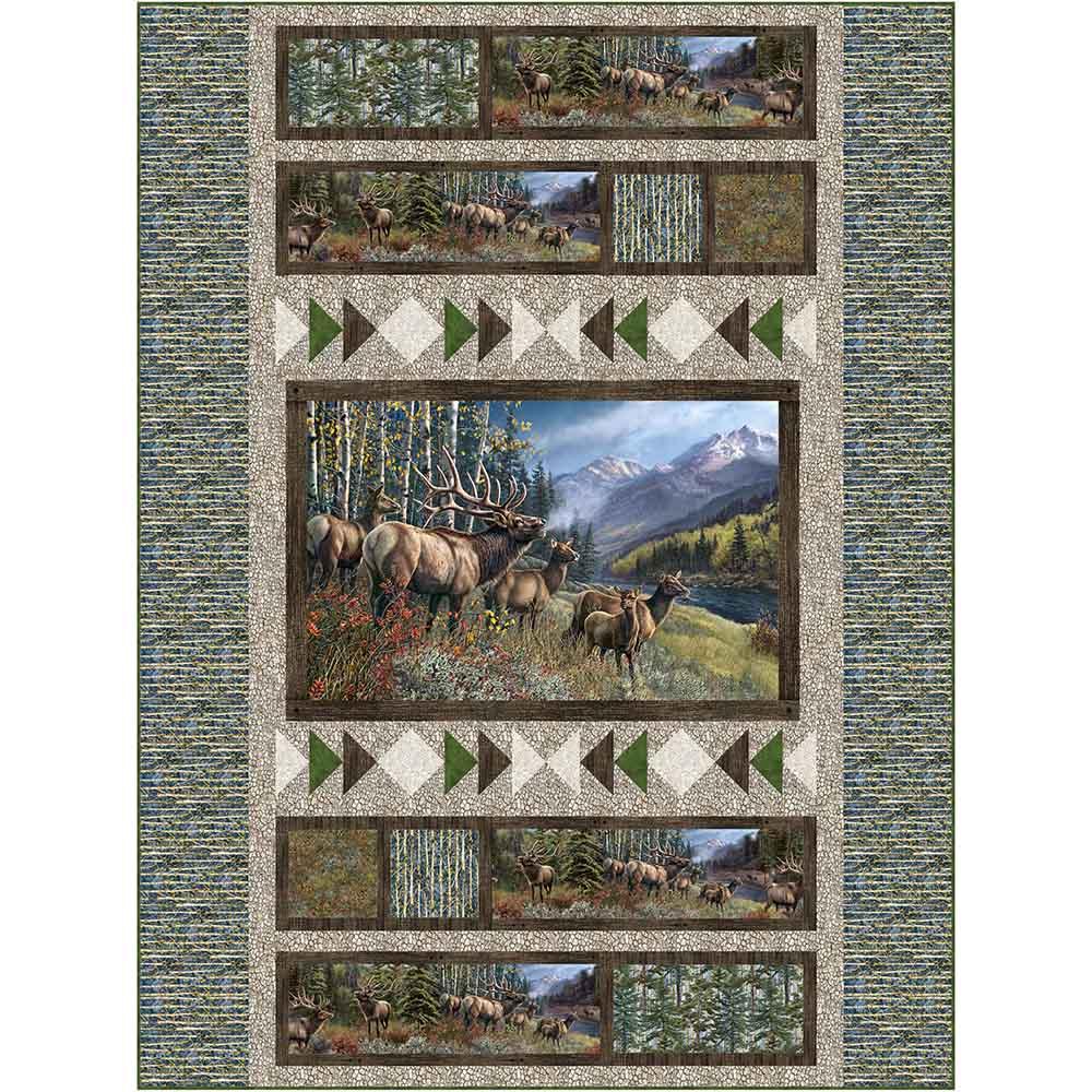 Journey into the wilderness with Timber Trails by James Meger for Northcott Fabrics—an artful blend of majestic wildlife, serene landscapes, forest textures and beautifully detailed elk and forest flora. The Gang Kit includes pattern by QuiltFox Designs and all the fabrics needed, including panel, for the top and binding. Finished size of this confident beginner project is 60" x 80". Backing available separately, 5 yards x 44" wide recommended.