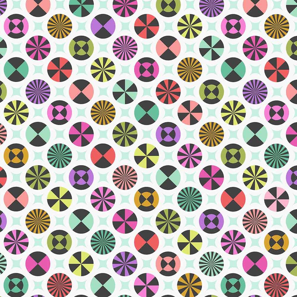 The beloved designer Tula Pink for FreeSpirit Fabrics, created the Déjà Vu collections to give both longtime fans and new collectors a chance to enjoy her past designs, without collector-level pricing. For this release, she reimagines Prince Charming in a bold new colorway, turning up the volume with vibrant, expanded rainbow of colors. Designed to shine on its own or pair beautifully with True Colors, this eight-piece mini collection is a fresh and joyful take on a beloved favorite. Featured form the Prince Charming Déjà Vu collection is "Taffy" in the colorway "Sugarrush".