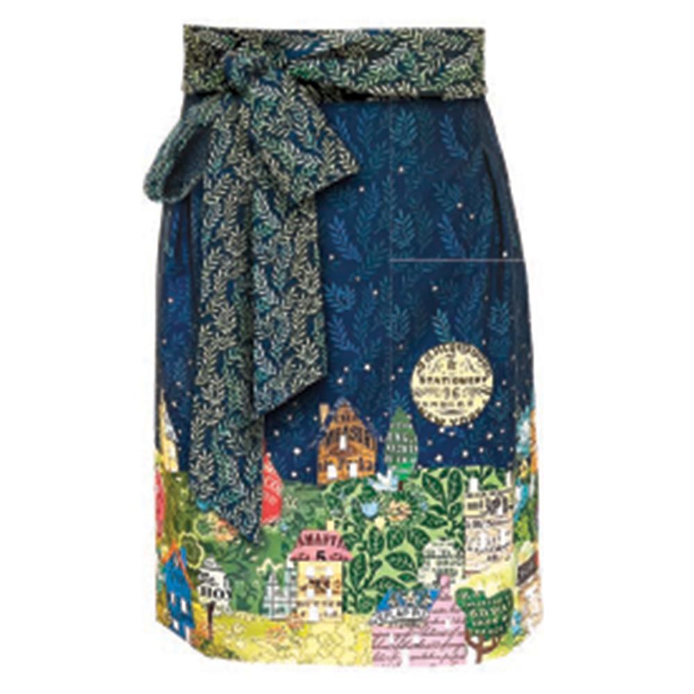 A perfect fabric choice for the Aloha Girl Apron Pattern is the Double Border print in Multi from the Paper Hamlet collection by Cathe Holden for Moda Fabrics. This vintage-inspired design captures the charm of a handcrafted village nestled beneath starry skies, blending storytelling, nostalgia, and timeless style. You'll need a yard of the Double Border print in Multi, which could potentially make two of the aprons. You'll also need a 1/2 yard to make the tie, we love the Newspaper Houses print in Aqua also from the Papar Hamlet collection.