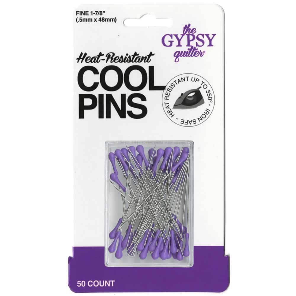 Cool Pins from The Gypsy Quilter are heat resistant up to 350 degrees Fahrenheit so you can iron over them without melting the head of the pin or burning your fingers. The large pinheads are easy to grasp and manipulate making them perfect for all ages. The heads of the Cool Pins are also colorful so they are easy to spot and remove. Cool Pins are sharp and fine at just .5 mm, so they will not leave holes in your finished projects. 50 pins come in a reusable storage box. Available in 2 colors: Gypsy Purple & Bohemian Blue.