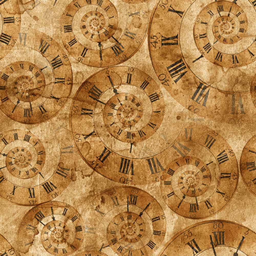 Blank Quilting - Full Steam Ahead Digital by Urban Essence Designs - Clock Swirls - Tan - Yardage