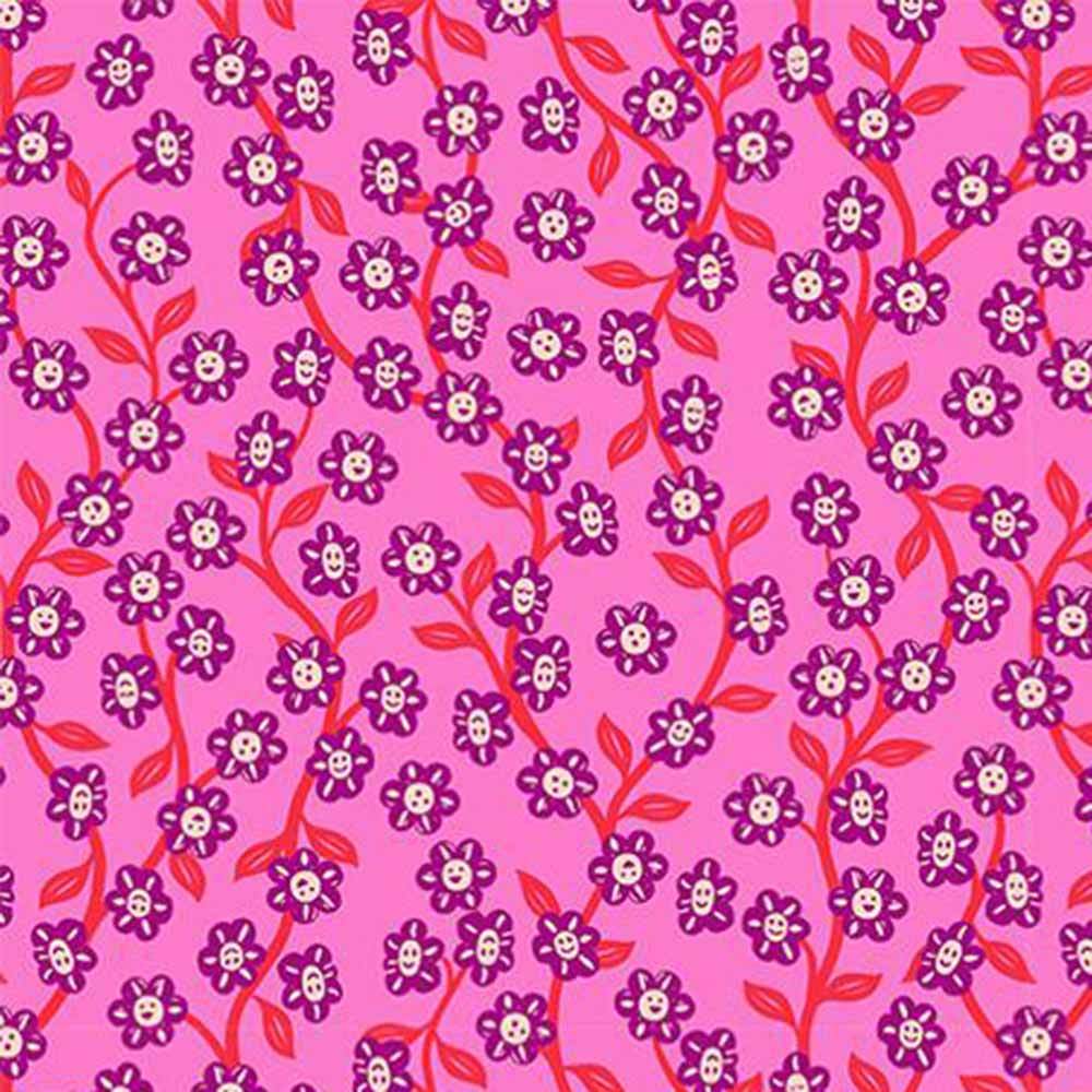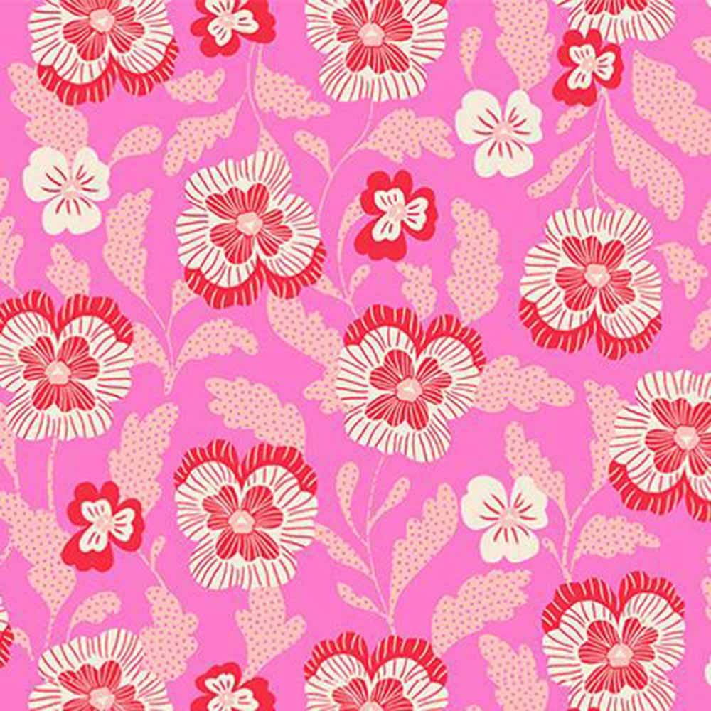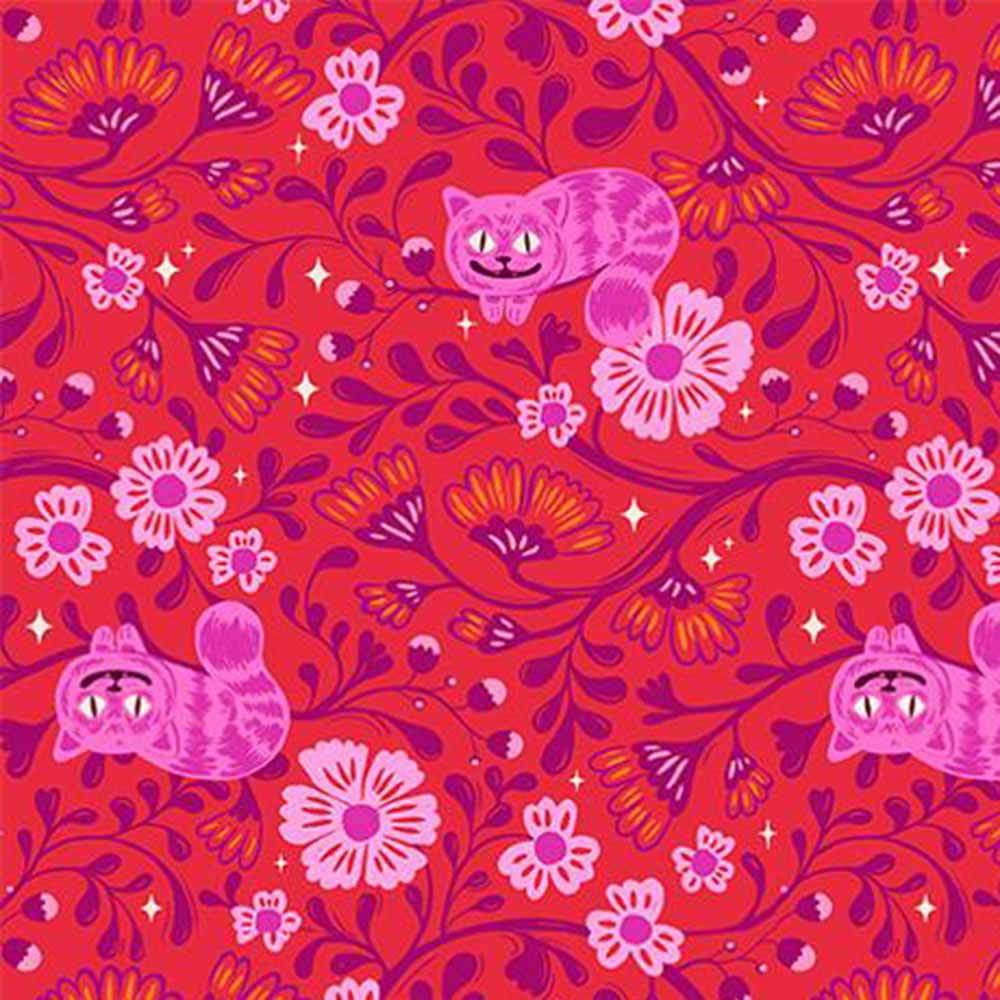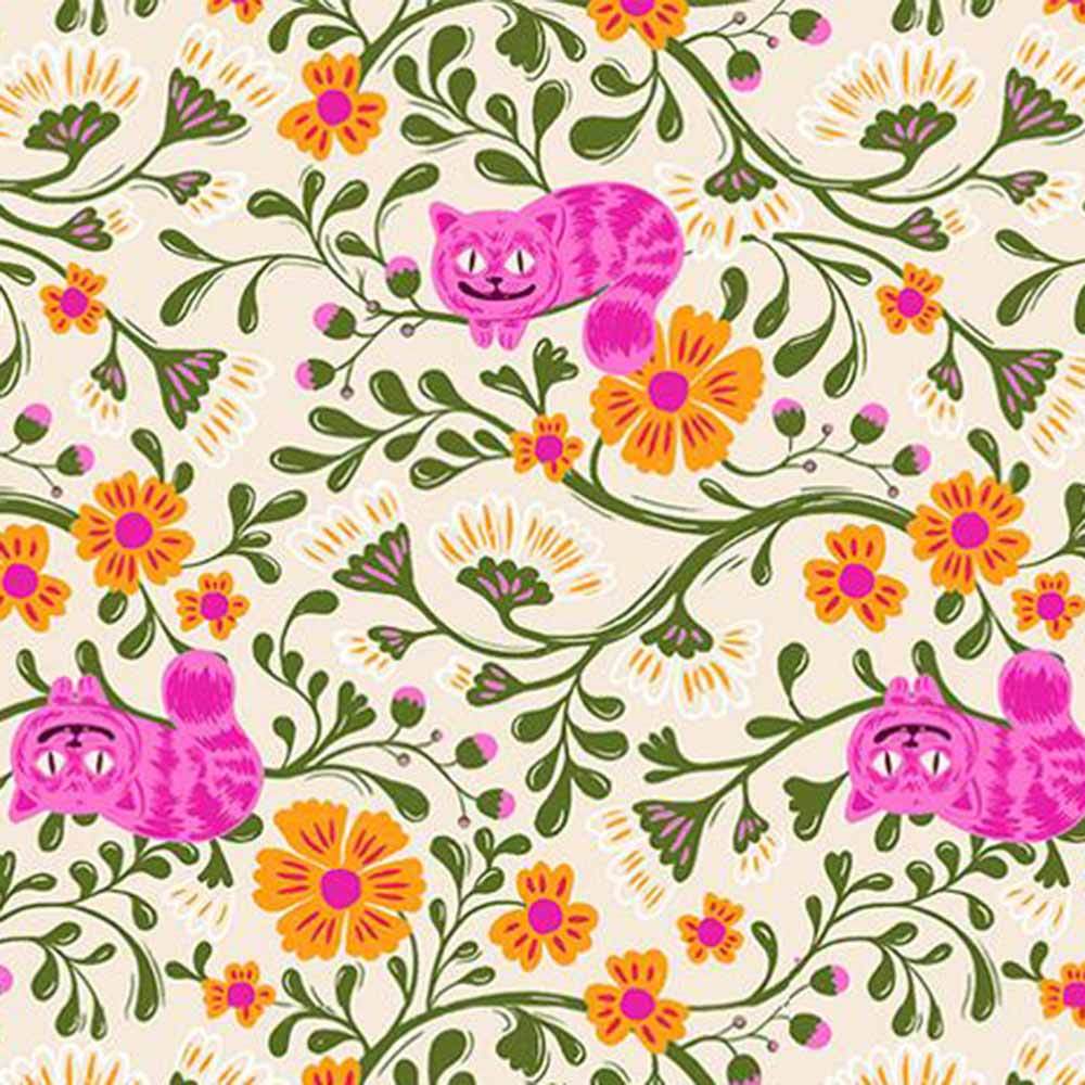 Filled with whimsy, enchantment and hidden suprises all with a modern flair. The Cameos Quilt Kit includes pattern from Tara Lee Quiltery and all the fabrics needed for the top and binding from the Hello Alice collection by Sarah Watts of Ruby Star Society. Prints feature curious hares, tea parties, smiling cats and Alice herself all in a color palette of pinks, berry, purples and cream. Finished size is 60" x 69". Backing available separately, 4 yards x 44" wide recommended.