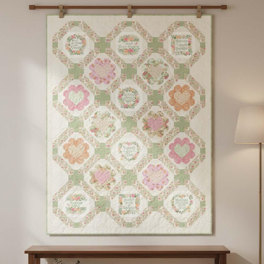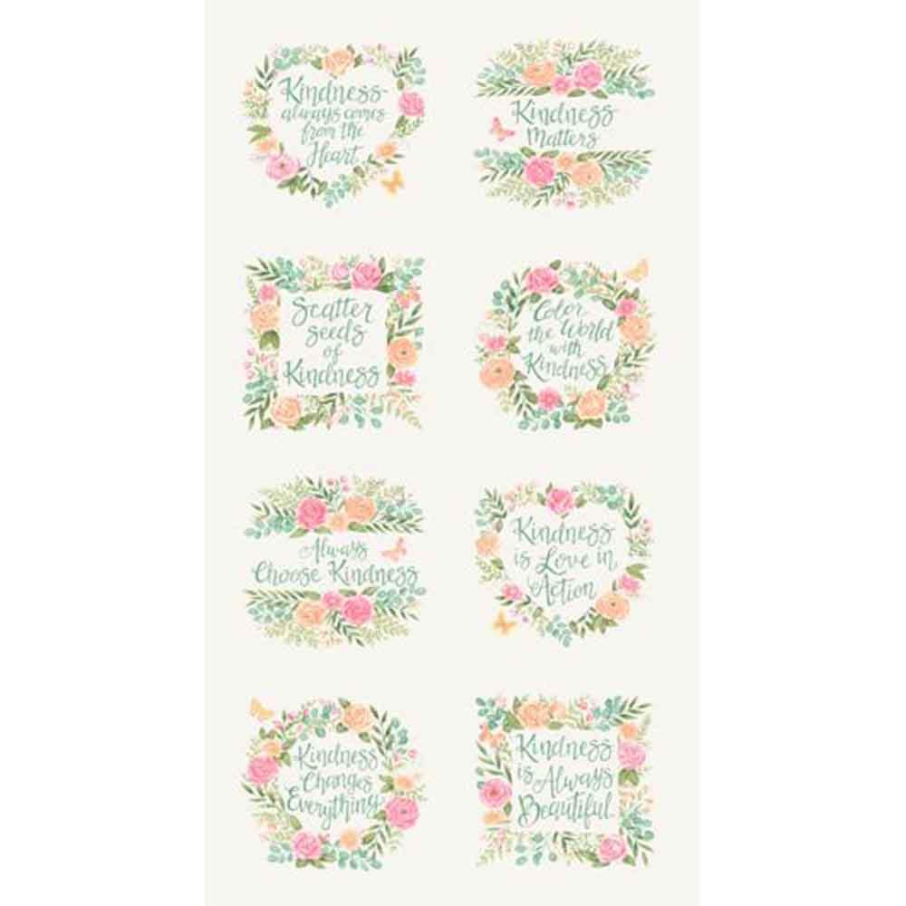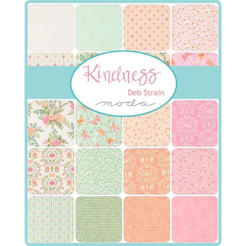 Discover the Kindness collection by Deb Strain for Moda Fabrics — a soothing palette of corals, sage, and creams, featuring delicate florals, thoughtful text, and gentle butterflies. Kindness brings warmth and inspiration to every stitch. The Chain of Kindness Kit includes pattern by Coach House Designs and all the fabrics needed, including panel, for the top and binding of a 62" x 82" quilt. Backing available separately, 5 yards x 44" wide recommended.