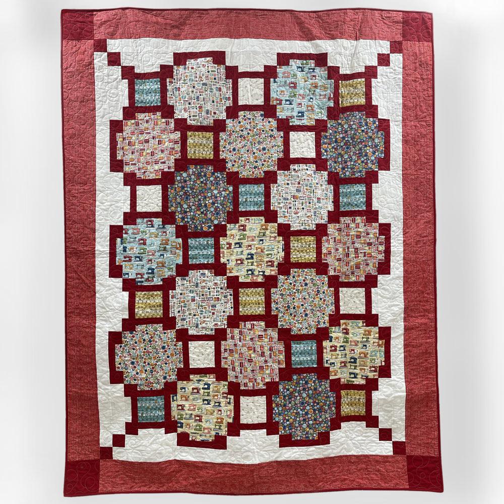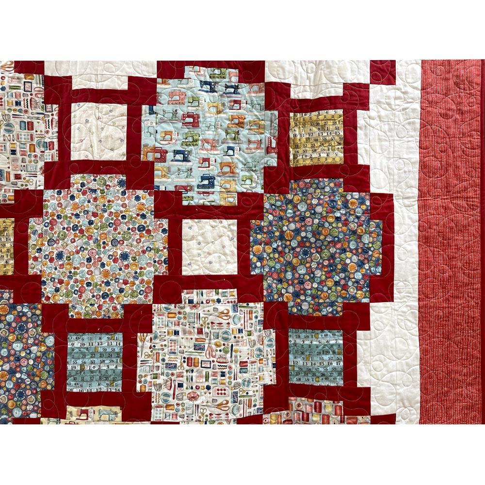 This kit features the Sewing Room fabric collection from Makower UK for Andover Fabrics. The Focus Pocus pattern is from Swirly Girls and is included in the kit along with all the fabrics for the top and binding. This quilt is an intermediate skill level. Finished size: 72" x 92". Backing is available separately, 2-1/2 yards suggested.