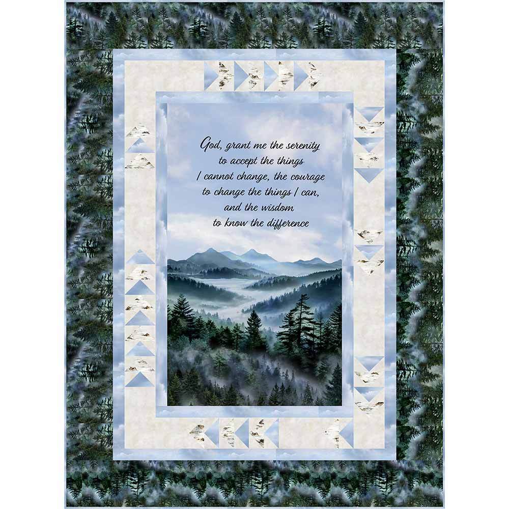 A quilt stitched with comfort, calm and quiet strength. The Goose Chase Quilt Kit includes pattern by PineRose Designs and all the fabrics needed, including panel, for the top and binding from the Serenity Prayer collection by Timeless Treasures. Finished size is 44" x 62". Backing is available separately, 4 yards x 44" wide recommended.