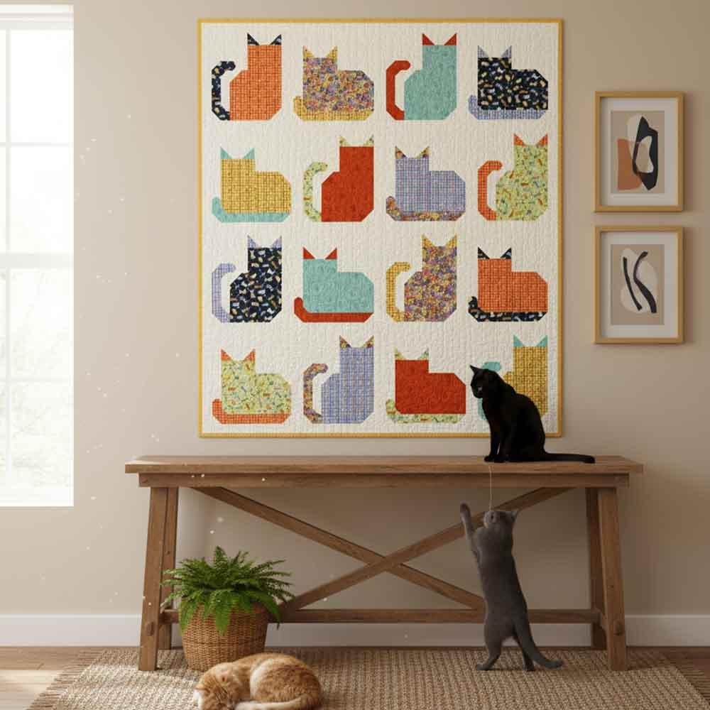 Kitty Cats - Cluck Cluck Sew - Cats Around Town by Sue Miano - Windham Fabrics - Quilt Kit
