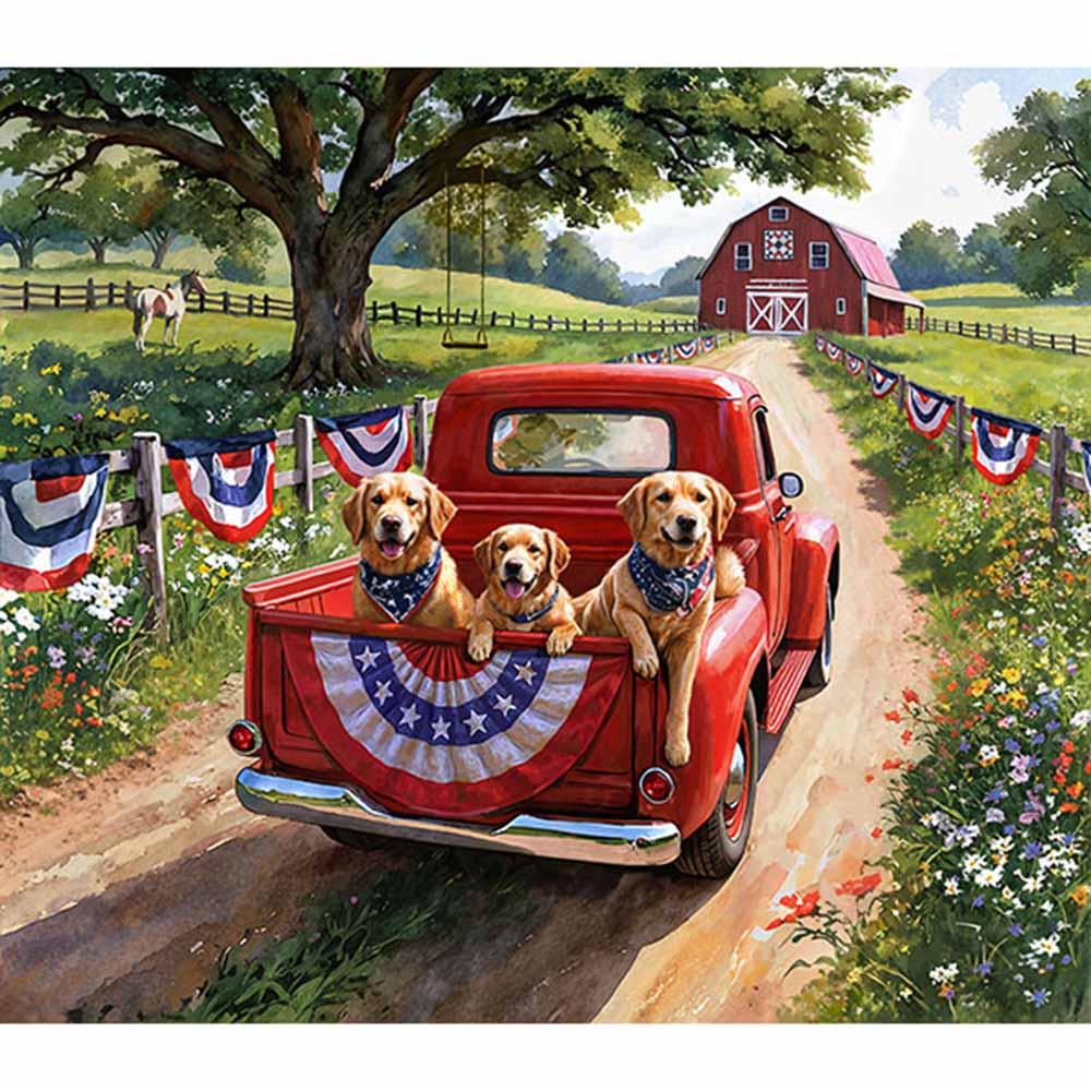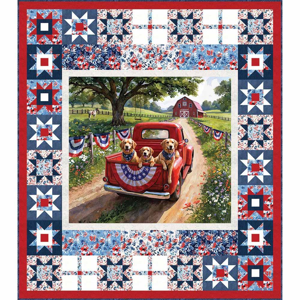 Red Truck Road Trip by Hoffman Fabrics captures the simple joy of summer days, open roads, and small-town Americana. Centered around the beloved red pickup truck and pup panel, this collection brings together nostalgic imagery and classic design elements that feel both playful and timeless.