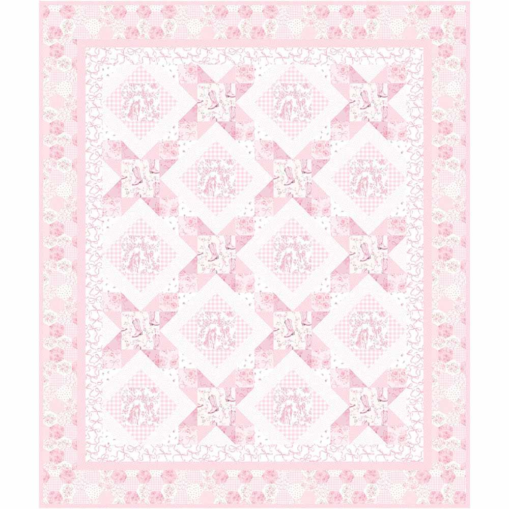 The Salt Water Taffy Quilt Kit includes pattern by Tourmaline & Thyme Quilts and all fabric needed from the Pretty in Pink Collection to complete the top and binding of a 46" x 60' quilt. Backing is available separately, 3-1/2 yards is recommended.