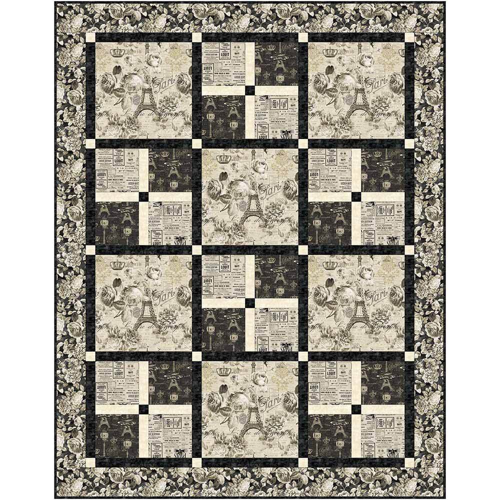 Sweet and Simple Throw Quilt - Paris Nights - A Digitally Printed Collection by Camelia Creations - Kit