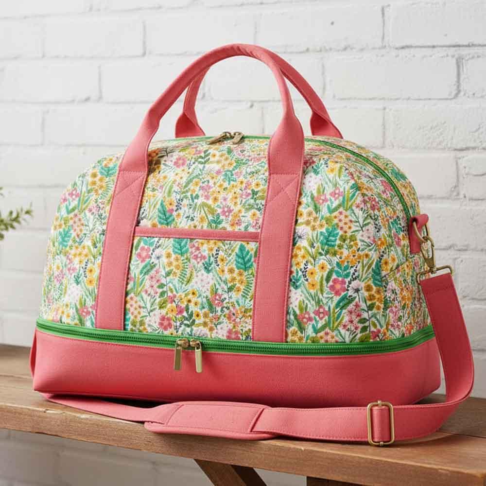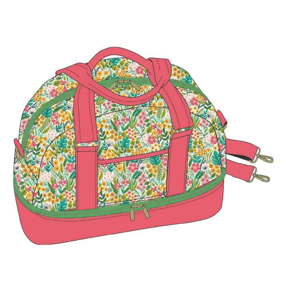 Townsend is a functional bag ideal for day trips and traveling! Used as a carry on, gym bag, weekender, doll bag, retreat bag, or however you’d like! The structured train case bottom is perfect for bulky items you want to protect, and have easy access to. The finished size of this bag is 16in wide at base, 13in high, and 6in deep. If you are concerned about sewing the train case bottom, I would suggest to make the entire bag out of quilting cotton first.